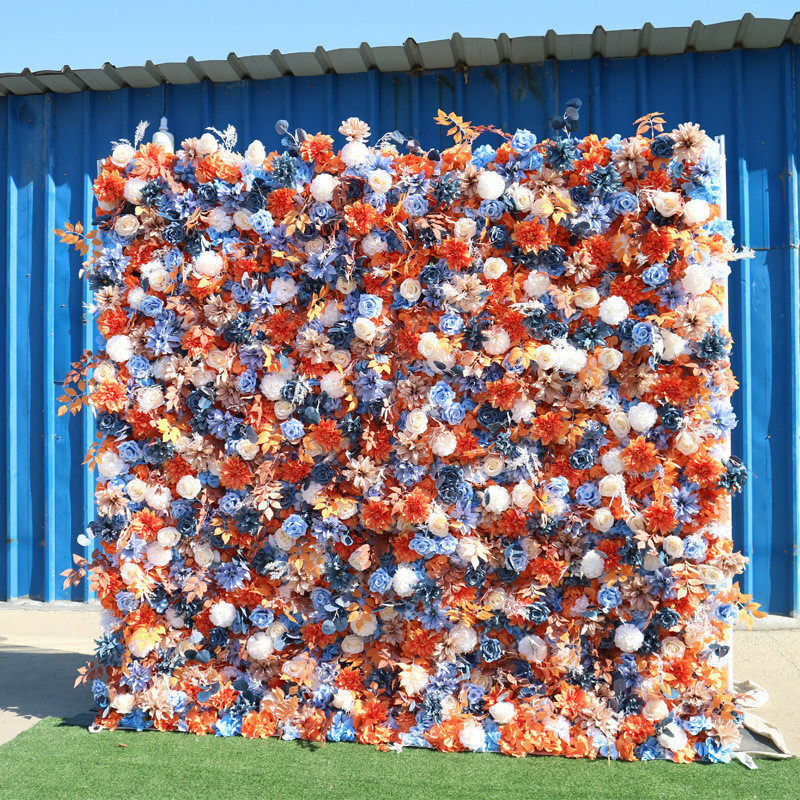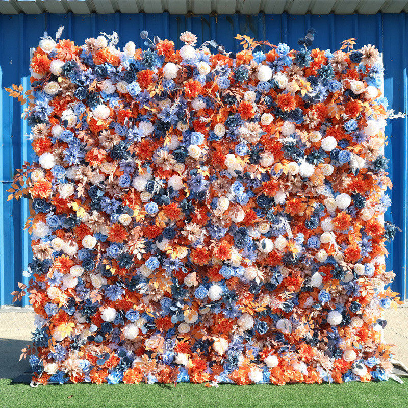 热销布底玫瑰花墙秋色系花墙商场背景婚庆橱窗背景装饰网红打卡