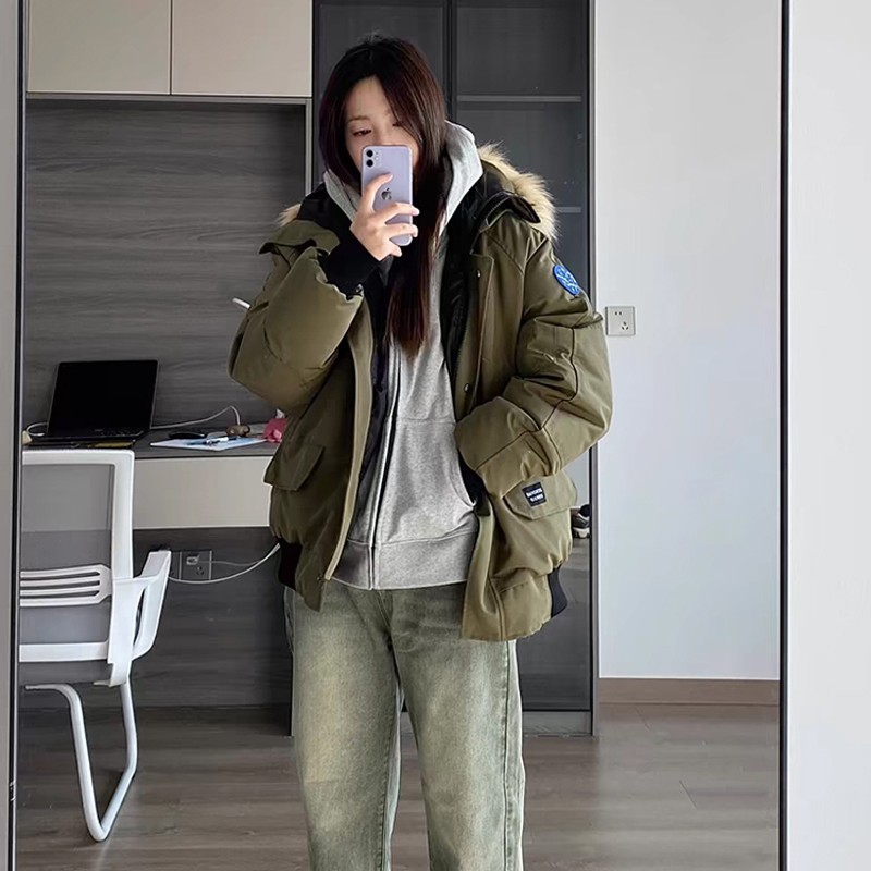 美式毛领羽绒棉服男冬季复古三防工装派克服加厚保暖情侣连帽外套