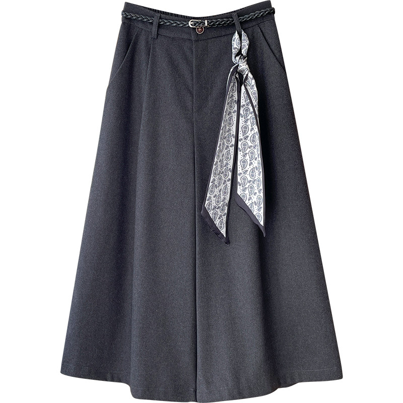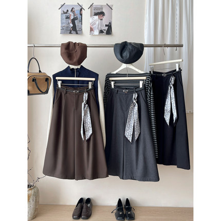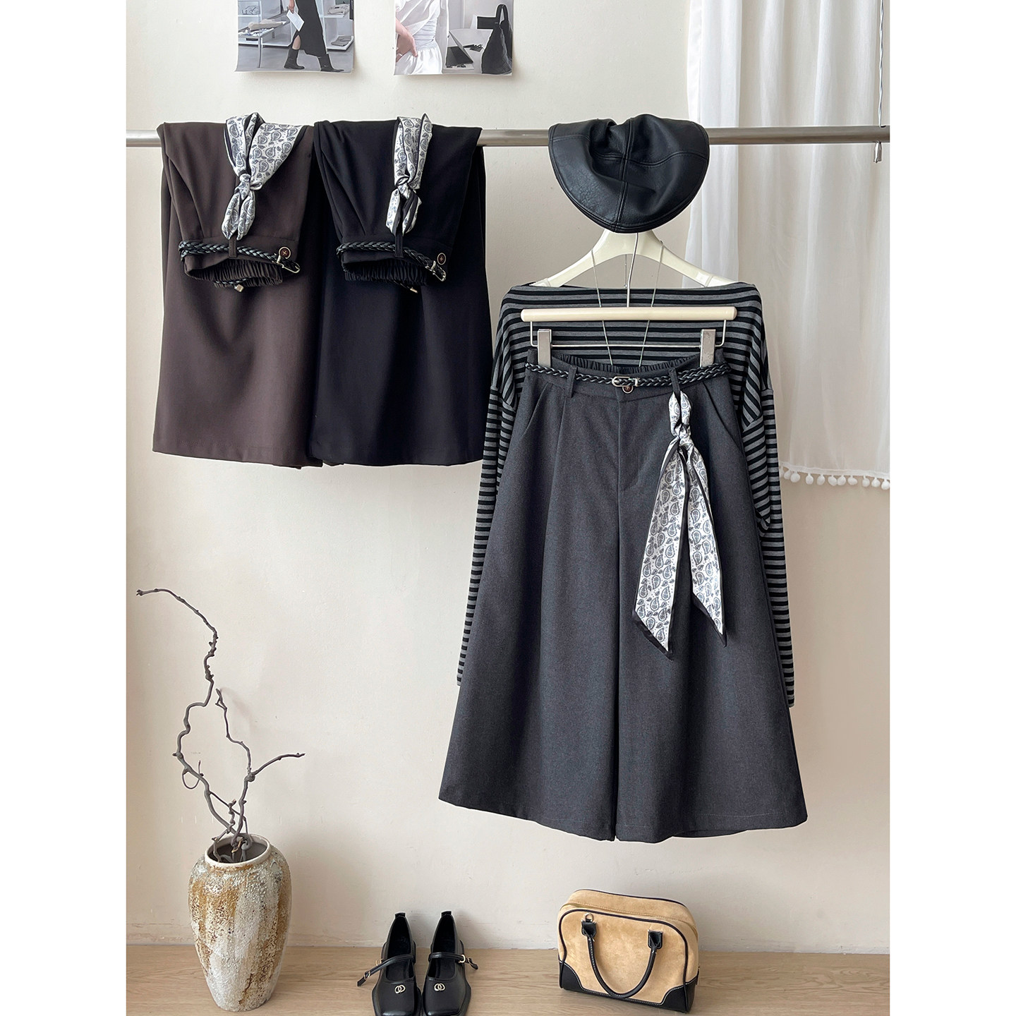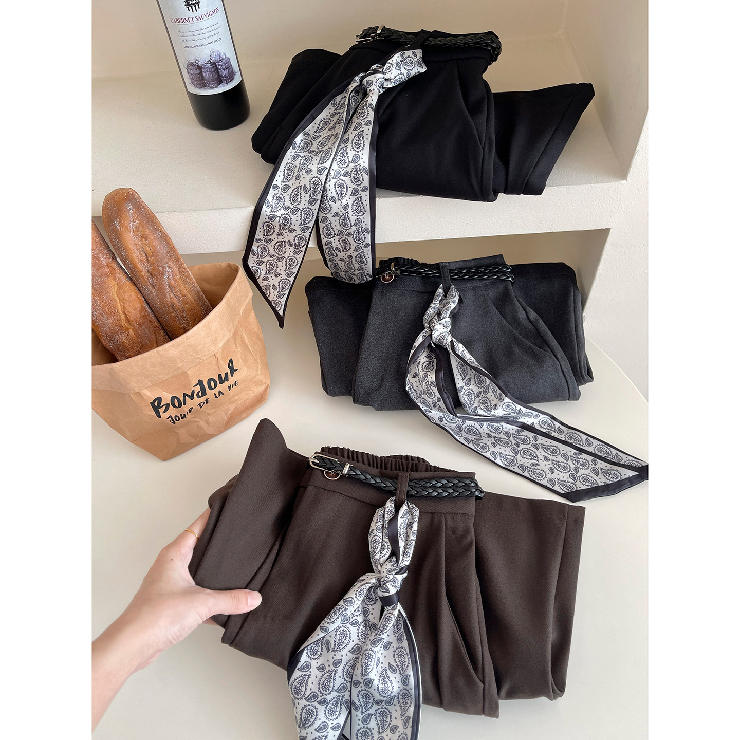 日韩系复古百搭配丝巾羊绒毛呢料西装阔腿裤女秋直筒七分休闲裤子