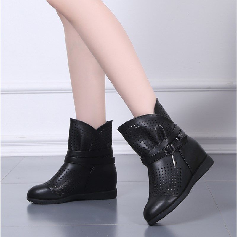 2024新款女靴子鞋春秋单靴马丁靴百搭平底内增高夏季女士镂空短靴