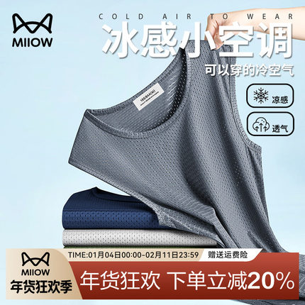 猫人冰丝网眼男士背心2026夏季新款坎肩修身透气速干运动无袖t恤