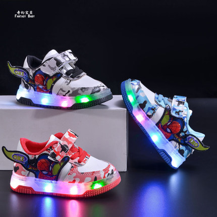 2岁发光蜘蛛侠男童板鞋低帮炫酷帅气小男孩运动鞋宝宝幼儿园鞋子5