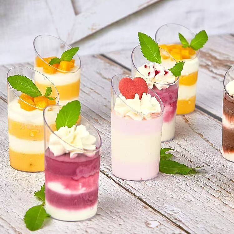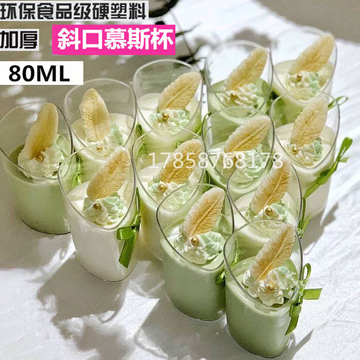 80ML斜口杯一次性硬塑料布丁杯提拉米苏杯慕斯杯甜品杯斜口杯50只