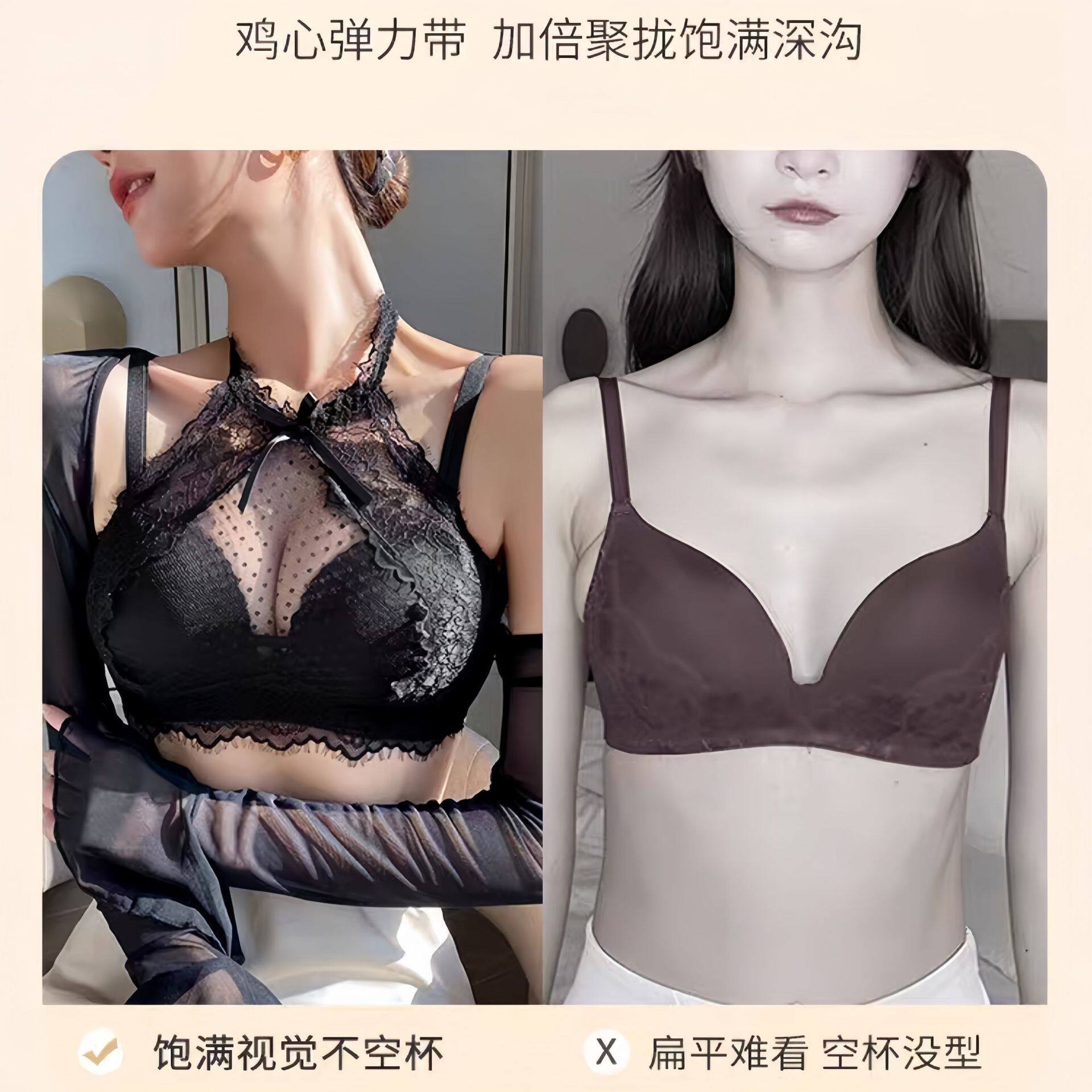 日系性感伪娘ts变装蕾丝挂脖式抹胸男娘内衣女装大佬聚拢文胸套装