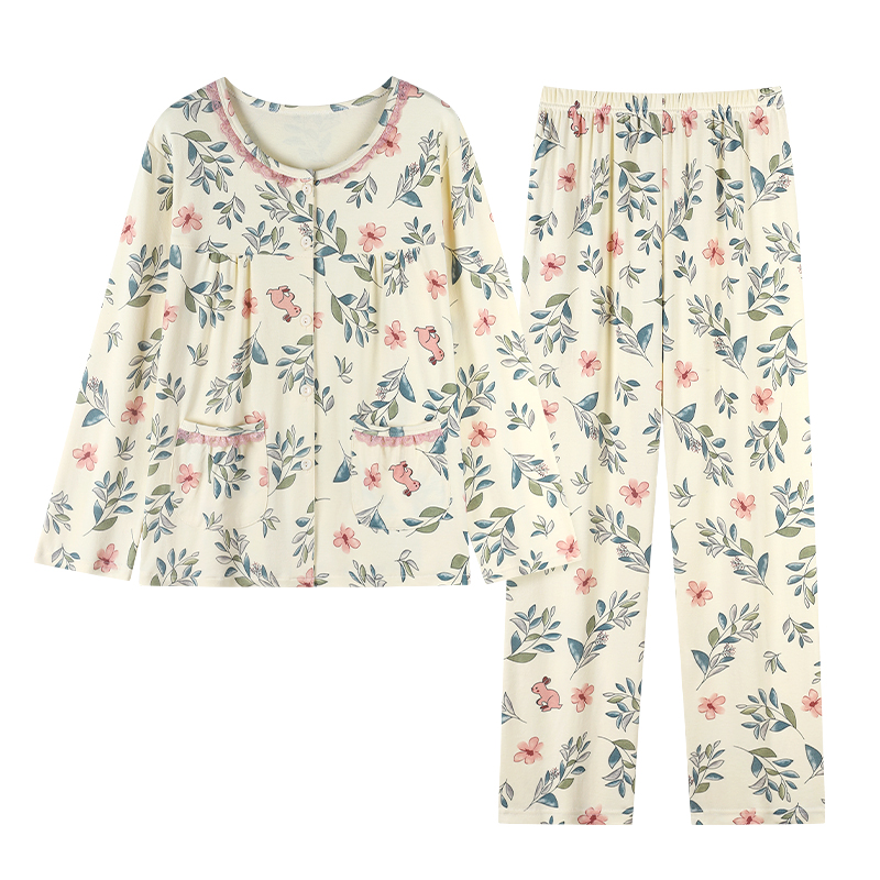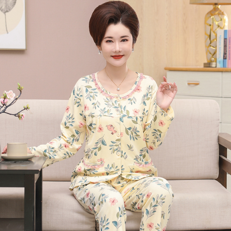 睡衣女春秋款纯棉长袖女士家居服秋季大码全棉中老年妇女妈妈套装