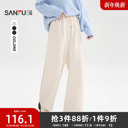 三福休闲裤2025新款冬季宽松bf慵懒风裤子加厚阔腿长裤女装512343