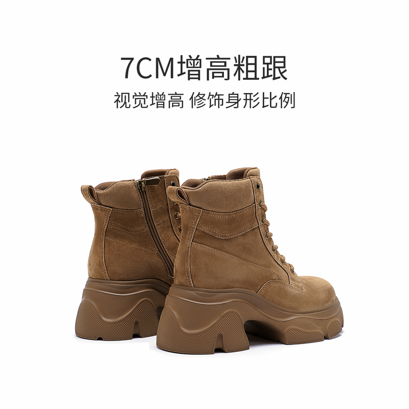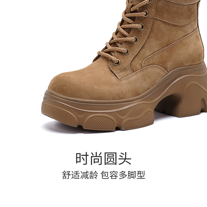 哈森大黄靴女冬季新款复古厚底马丁靴粗跟工装靴HA241601