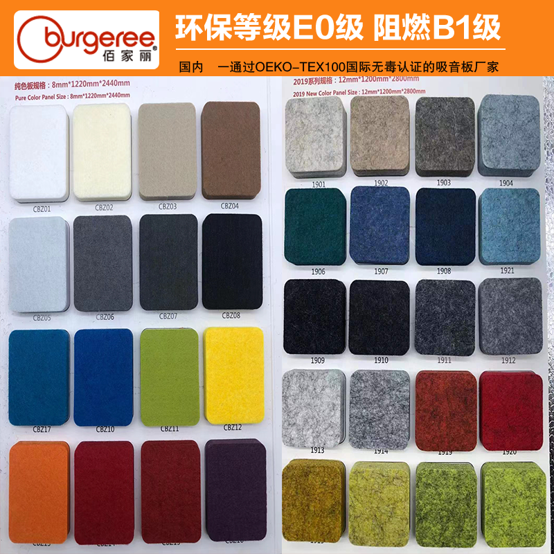 佰家丽聚酯纤维吸音板BZ系列CBZ光面板19系列12mm厚吸音板毛毡板
