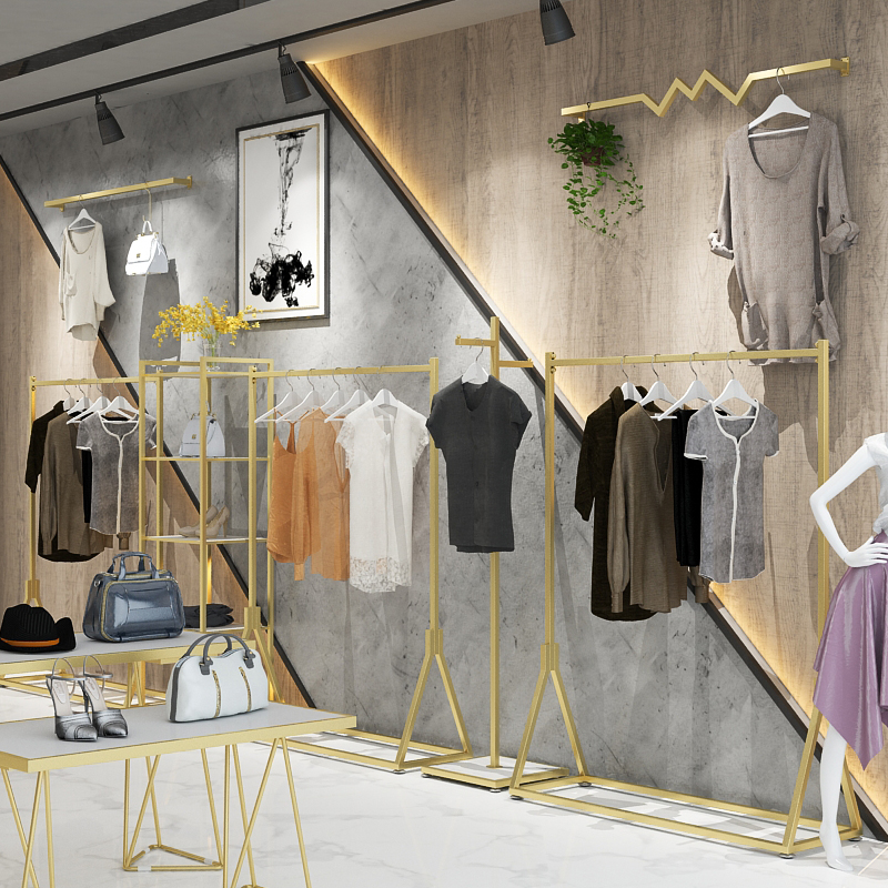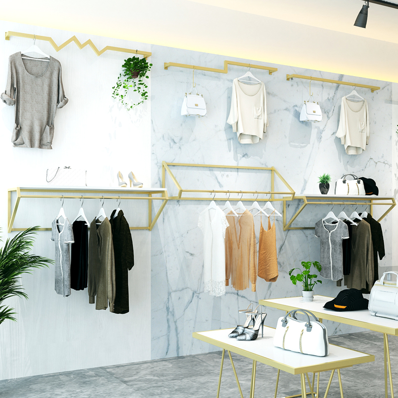 纳米金色服装店展示架上墙女装店B陈列架装修货架正挂衣服架壁挂