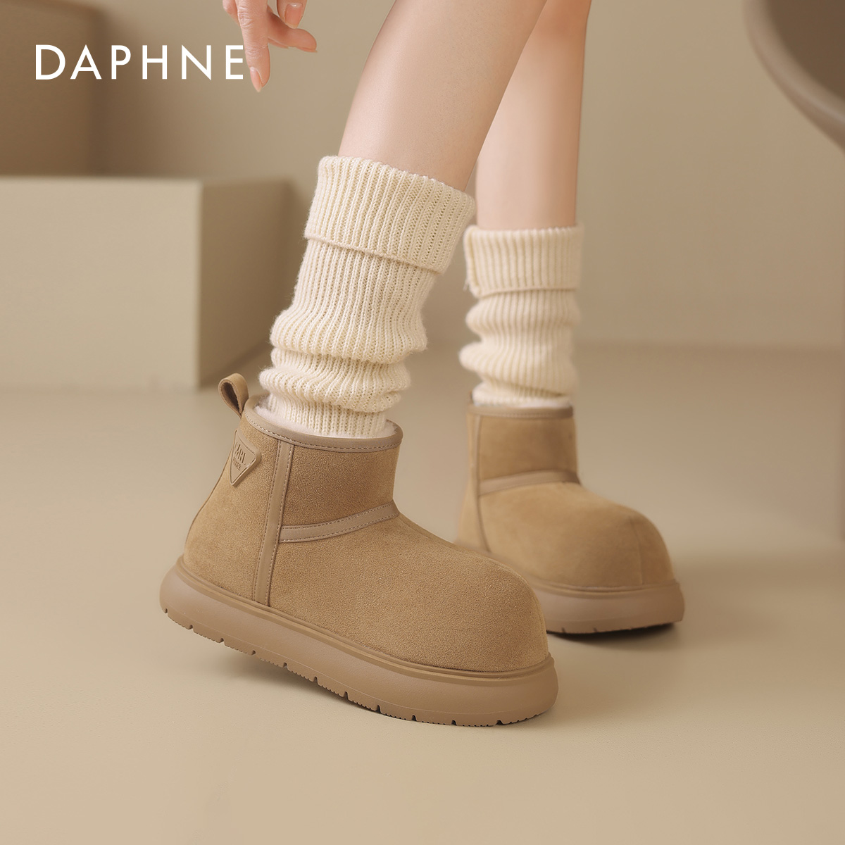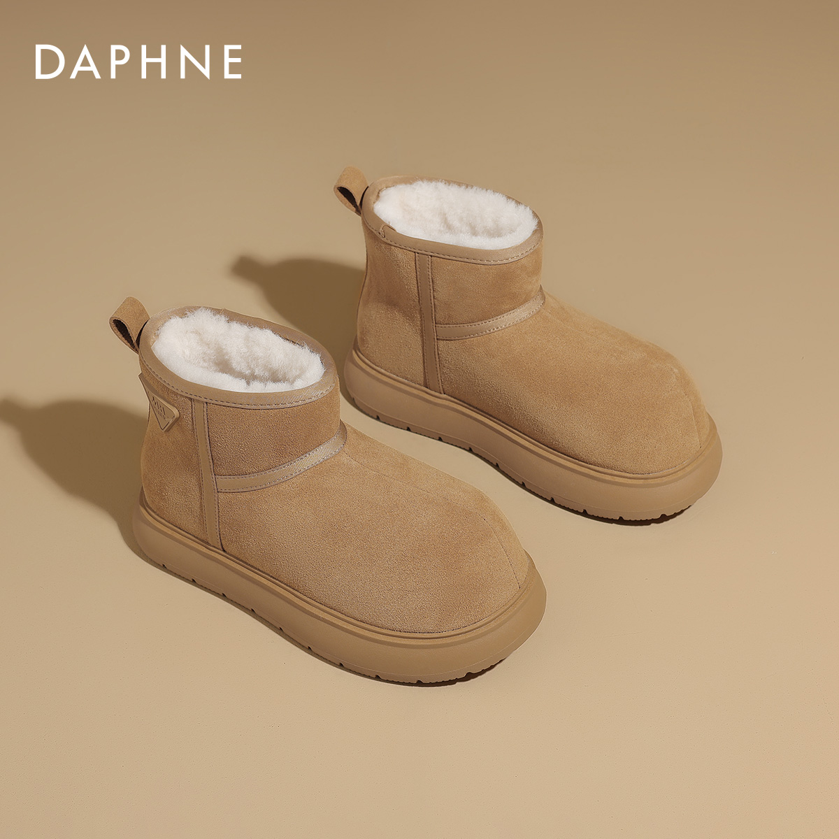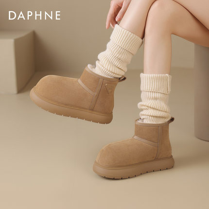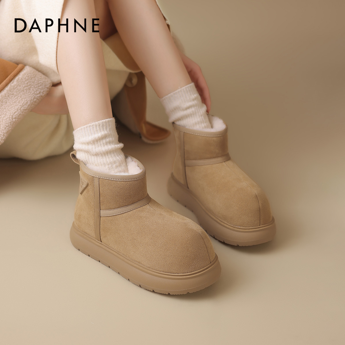 达芙妮真皮面包雪地靴2025新款加绒加厚保暖防滑冬季棉鞋女款冬鞋