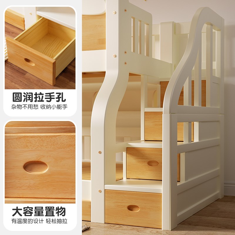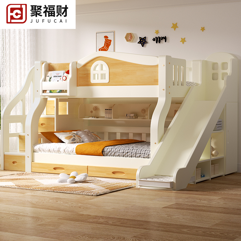 全实木儿童床男孩女孩上下床铺带滑梯双层床小户型简约高低子母床