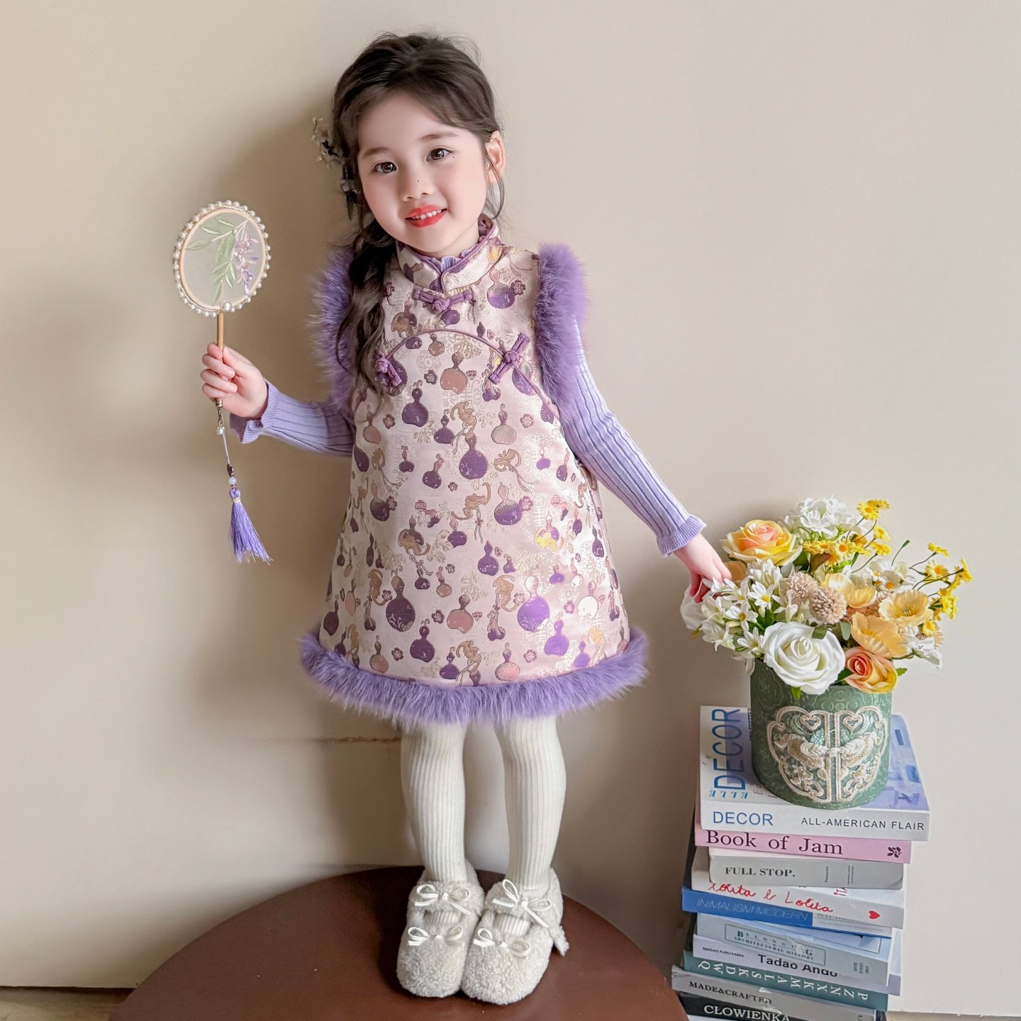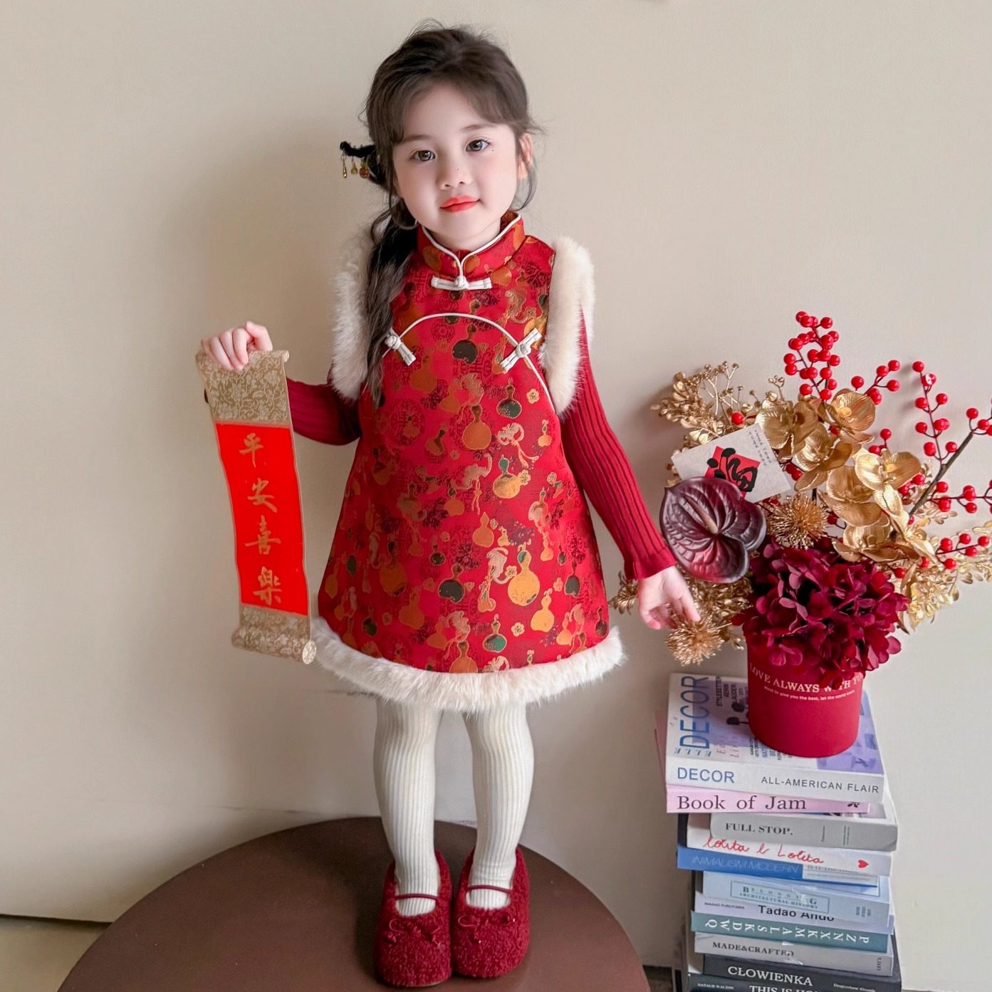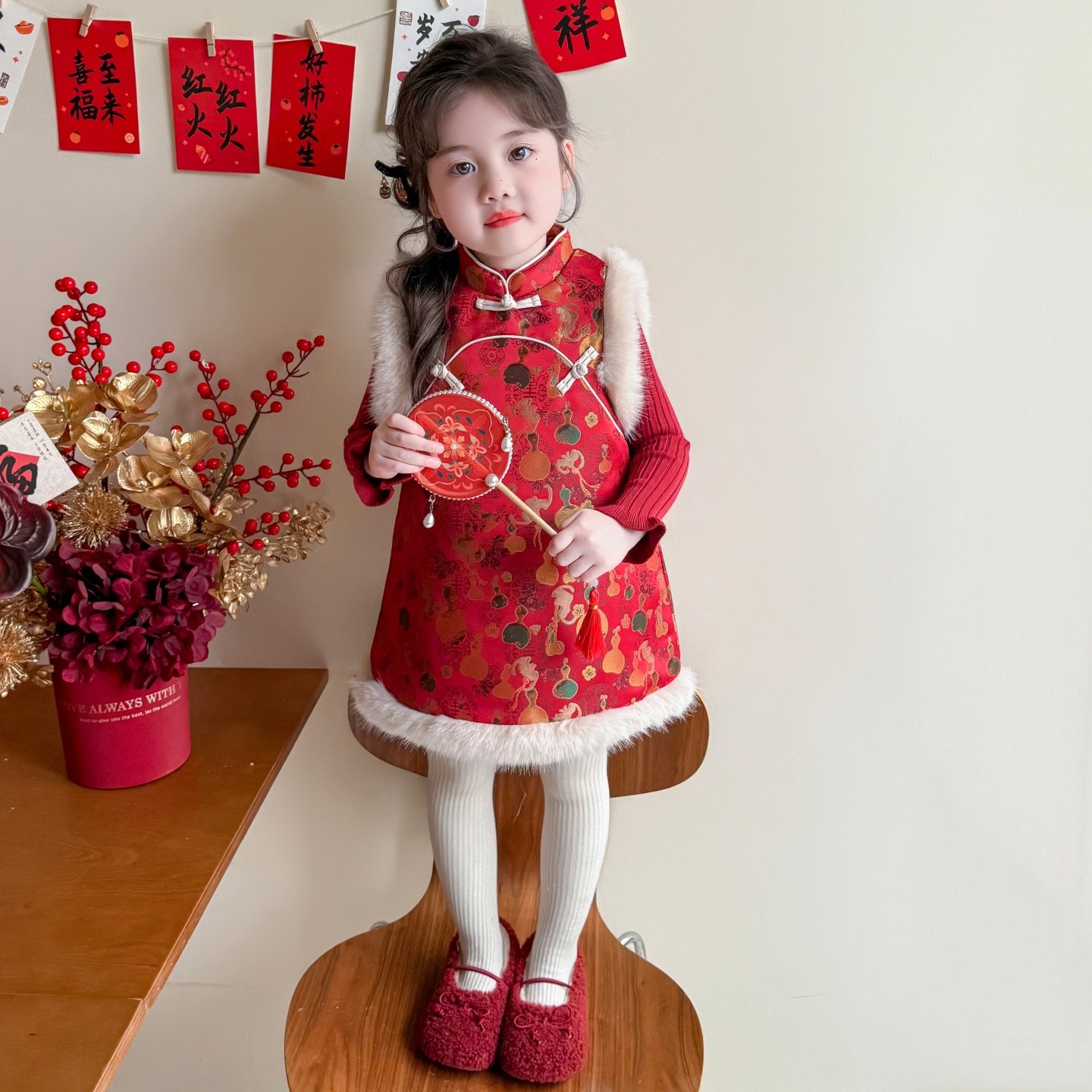 女童连衣裙冬季2025新款儿童女宝宝冬装招财中国风旗袍裙子拜年服