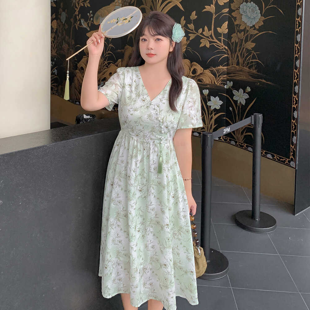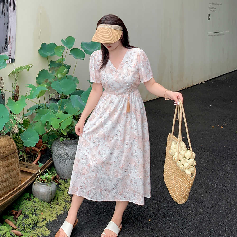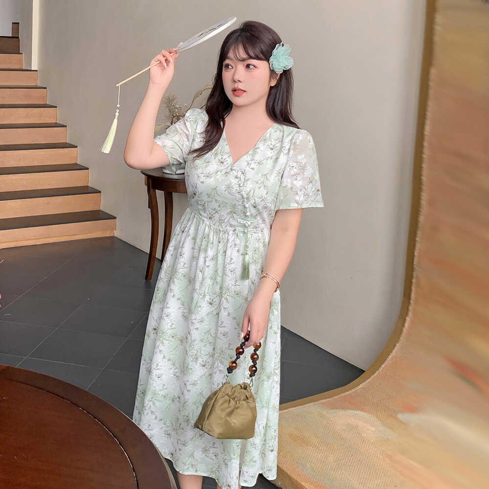 夏季大码女装设计感小个子长裙2025年新款胖mm茶歇法式碎花连衣裙