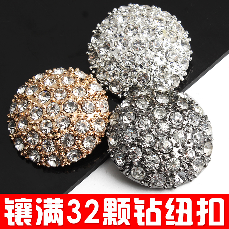 貂皮大衣皮草扣高档水钻上衣女扣子百搭纽扣风衣毛呢外套圆形钮扣