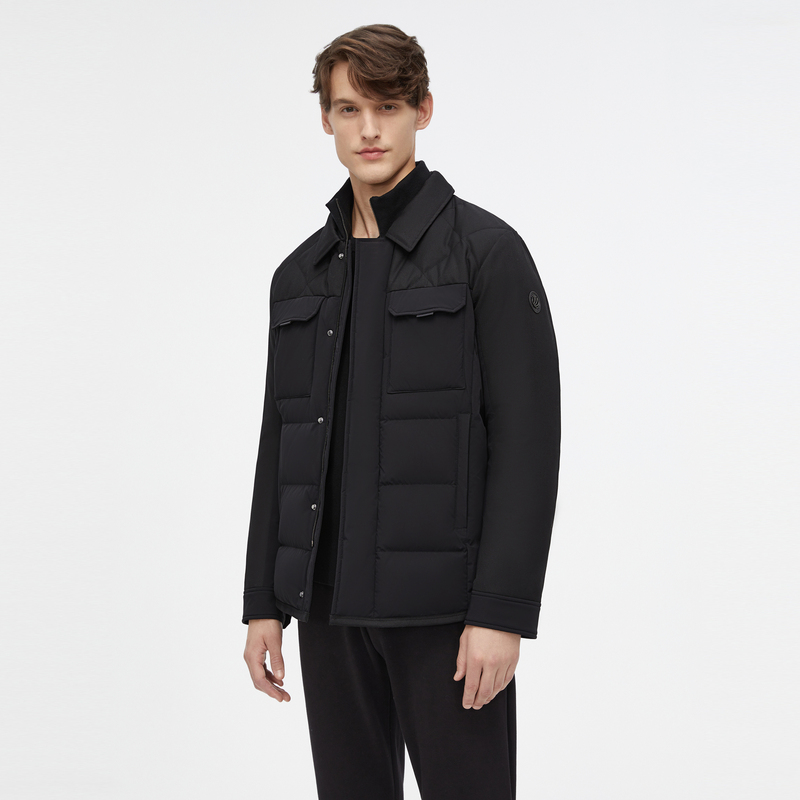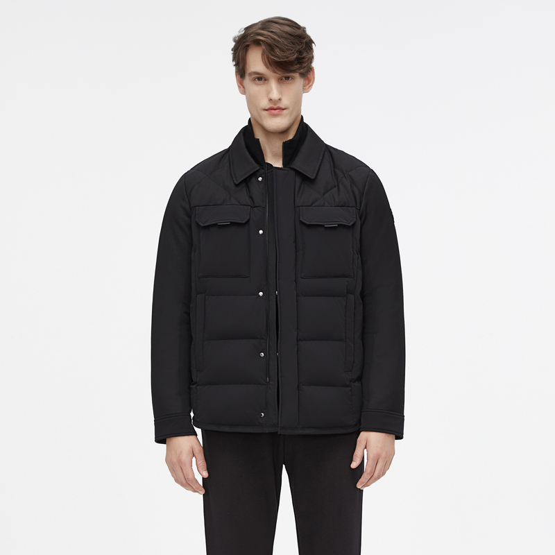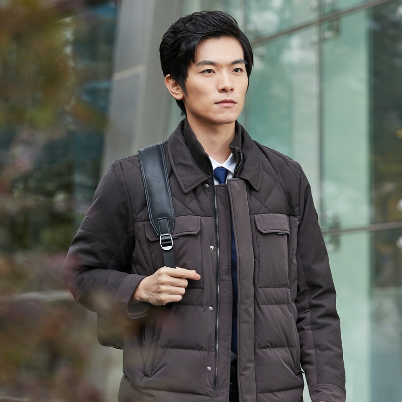 【鹅绒】波司登奥莱男装可水洗羊毛翻领简约拼接时尚干练厚羽绒服