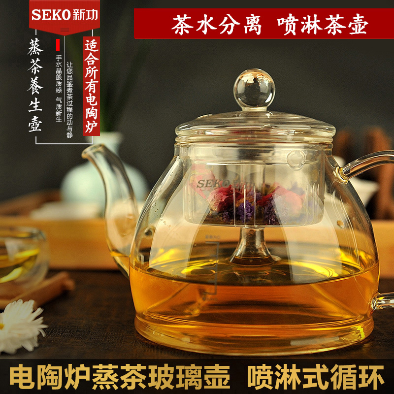 新功电陶炉家用蒸汽醒茶泡茶高硼硅玻璃煮茶器喷淋式普洱茶壶734