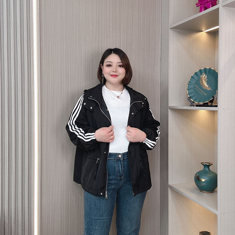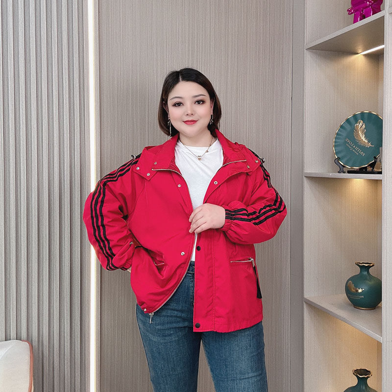 短款棒球服外套女2024春秋季新款大码女装胖mm宽松休闲连帽风衣潮