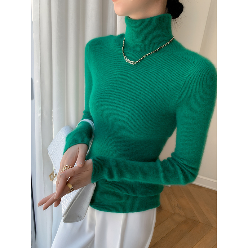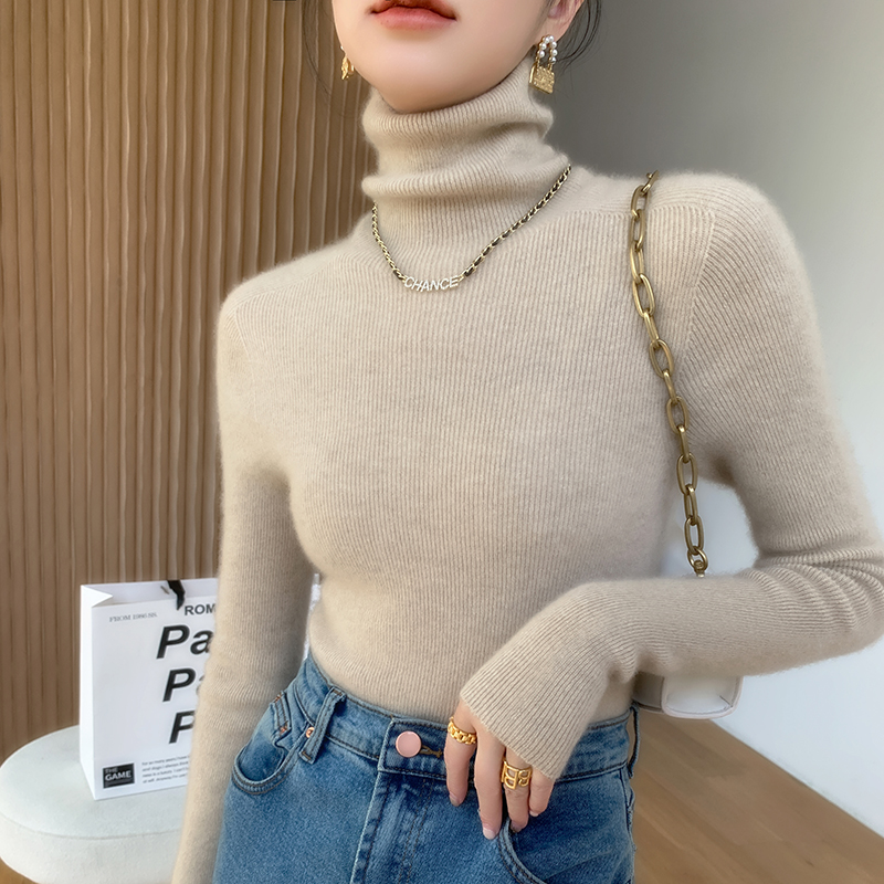 一线成衣100%羊绒衫女高领修身软糯紧身打底衫堆堆领毛衣针织内搭