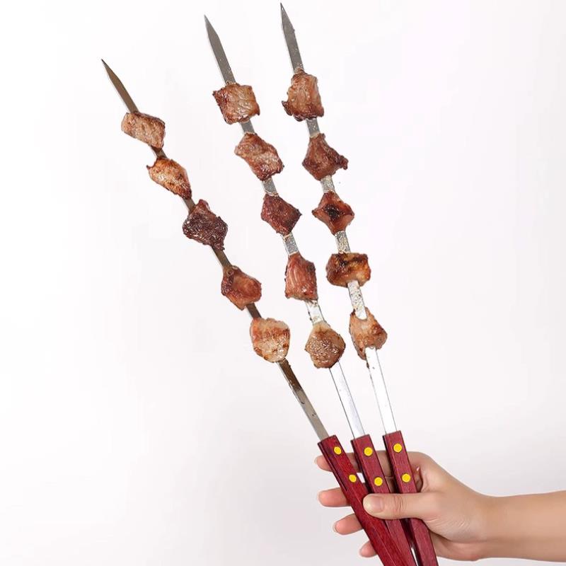 烧烤签子不锈钢大号木柄烤肉烤串羊肉串扁签油边大串铁钎商用工具