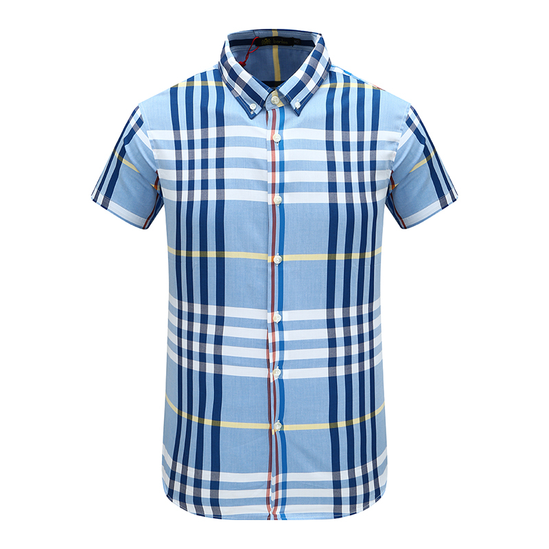 AB1409邦纳断码清仓夏季男简约商务休闲百搭蓝色格子全棉短袖衬衫