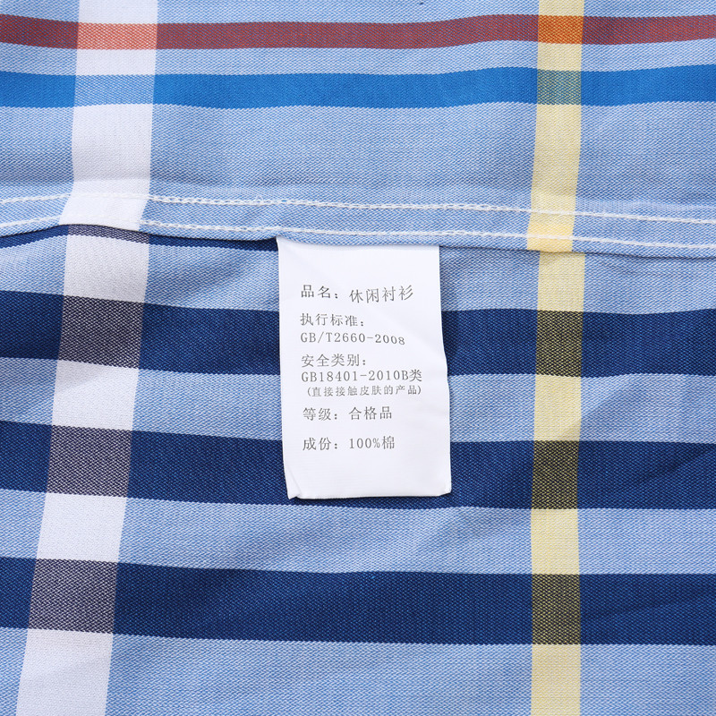 休闲百搭蓝色格子全棉短袖衬衫