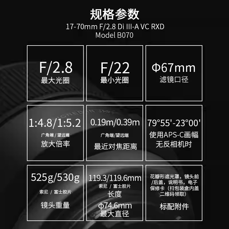 腾龙17-70mm F/2.8 VC防抖 半画幅 腾龙1770镜头 索尼E口 富士X口