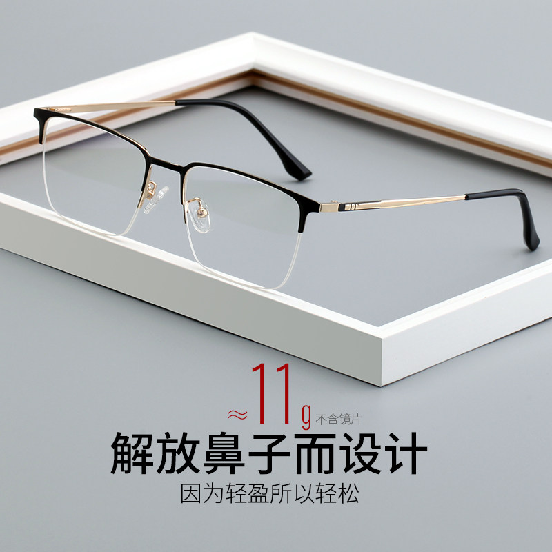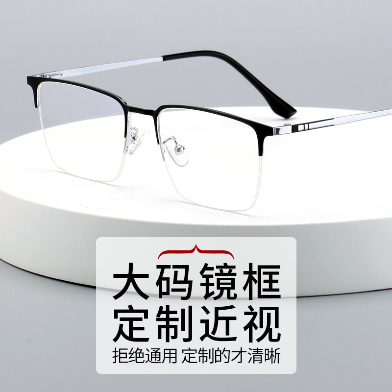 可配镜半框近视眼镜男大脸眼镜框大码大框眼镜架有度数防蓝光150