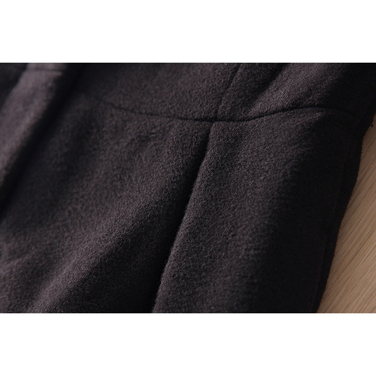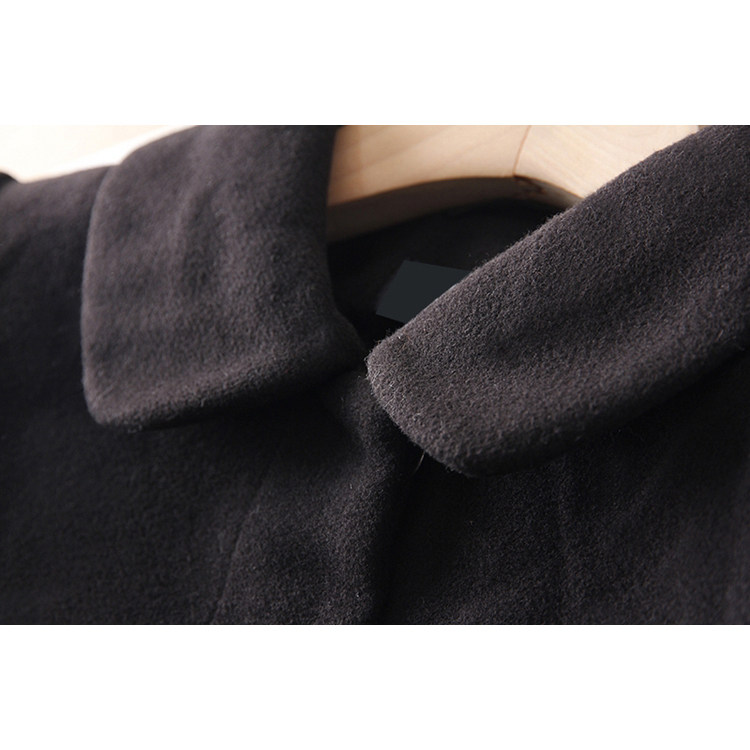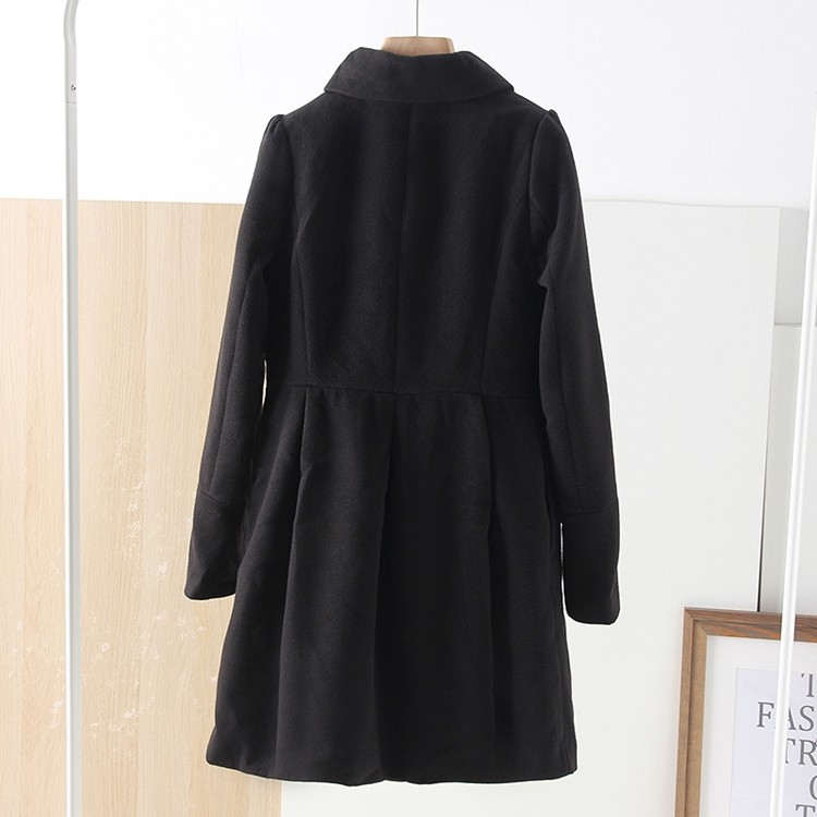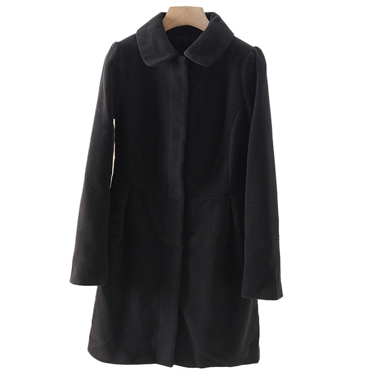 澳洲单黑色气质赫本风娃娃领垫肩收腰中长款毛呢外套女装呢子大衣