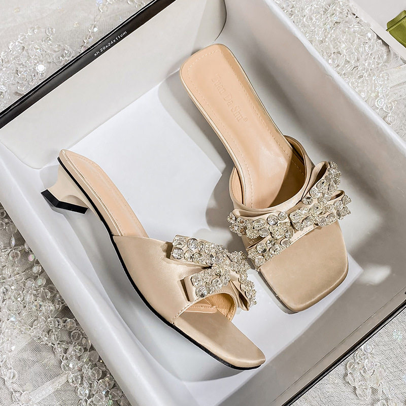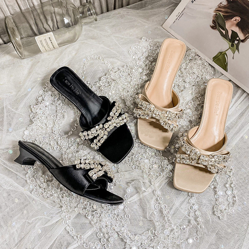 2025夏季新款性感钻带高跟凉鞋女粗跟水晶跟凉拖鞋外穿大码41一43