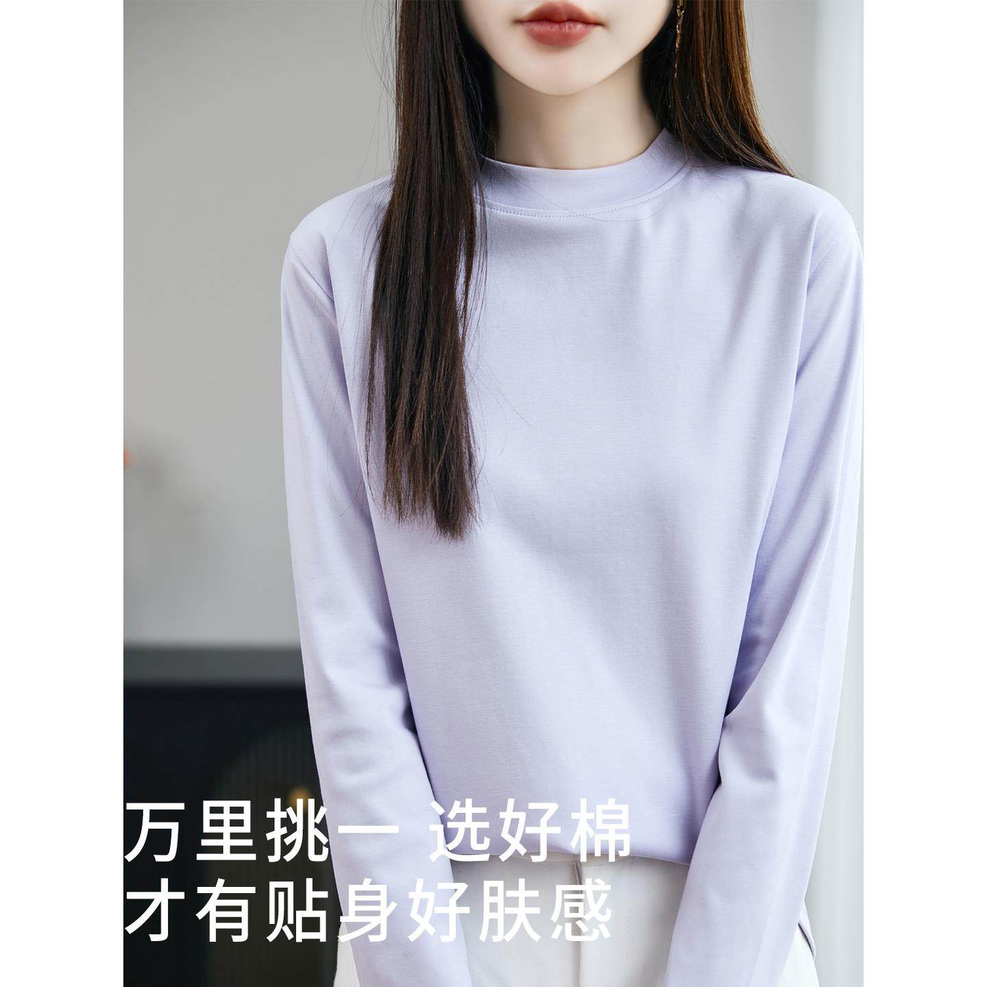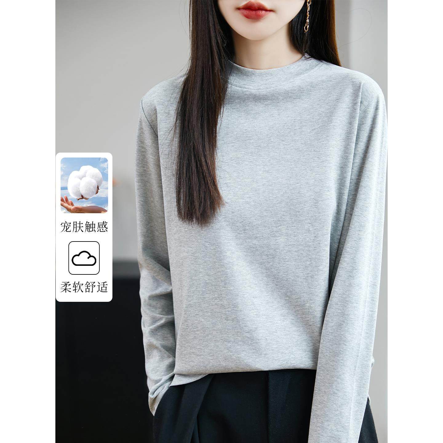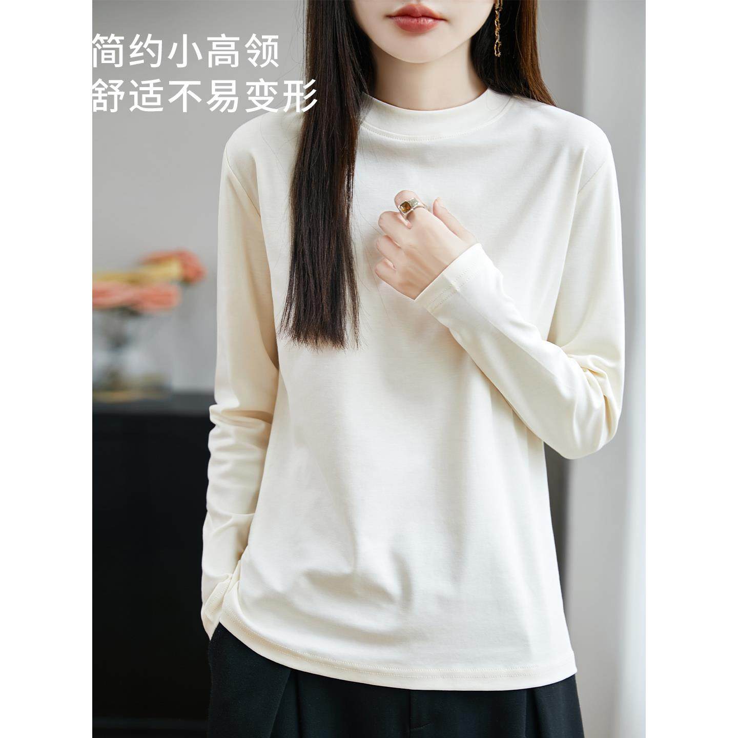 高级感丝光纯棉卫衣女长袖t恤内搭半高圆领打底衫春秋冬新款针织