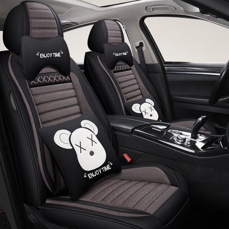热销汽车坐垫新款四季通用亚麻布艺座套座垫小车坐套全包围专用五