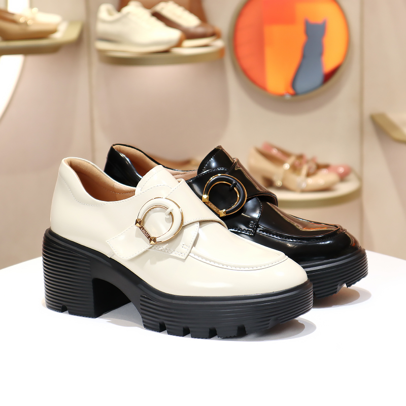KISSCAT接吻猫2025新款真皮厚底孟克鞋D扣魔术贴单鞋女KA65113-50
