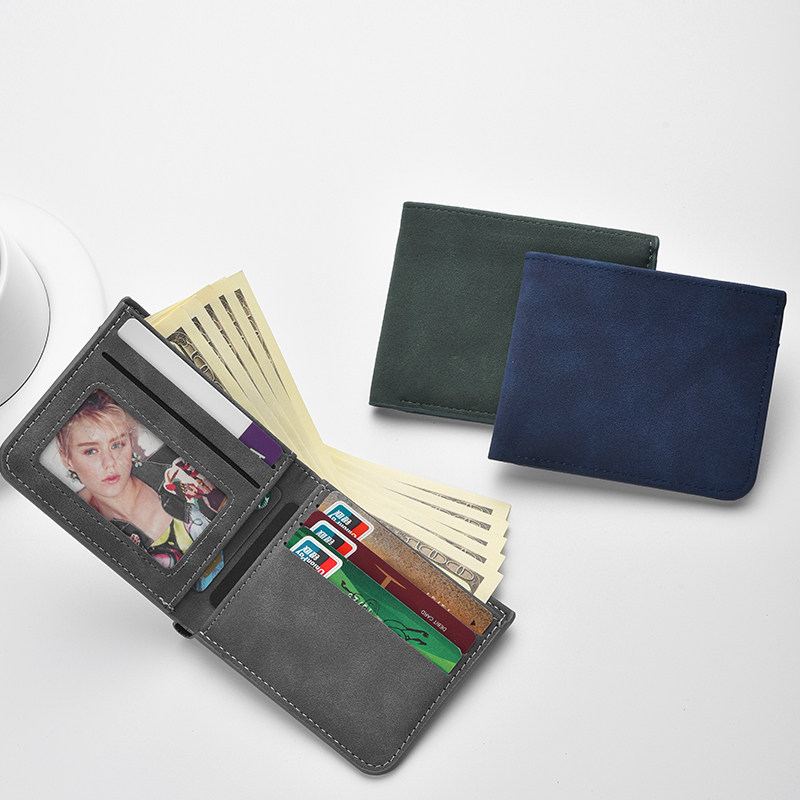 2026新款翻毛皮钱包男士短款简约超薄多卡位皮夹卡包男款潮流钱夹