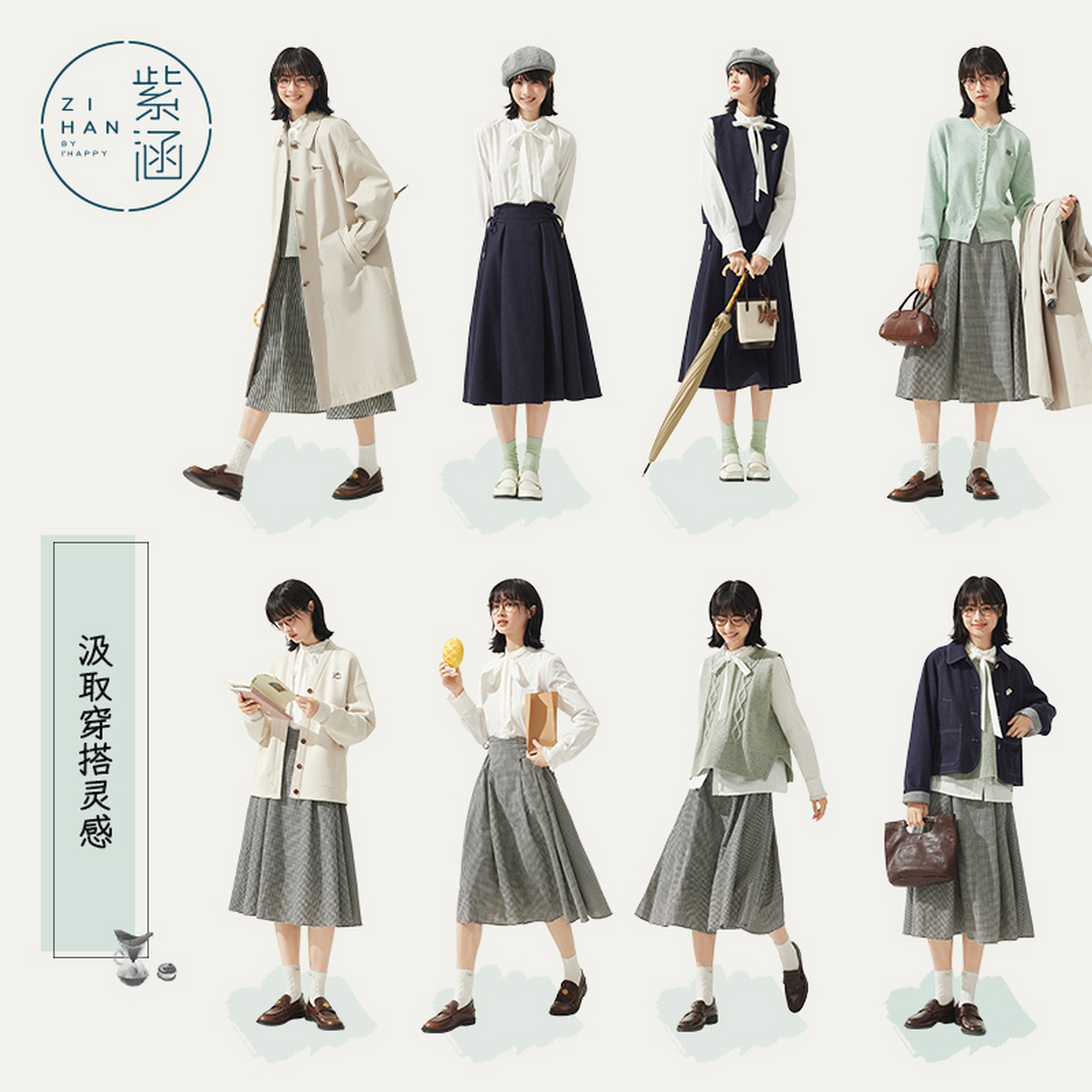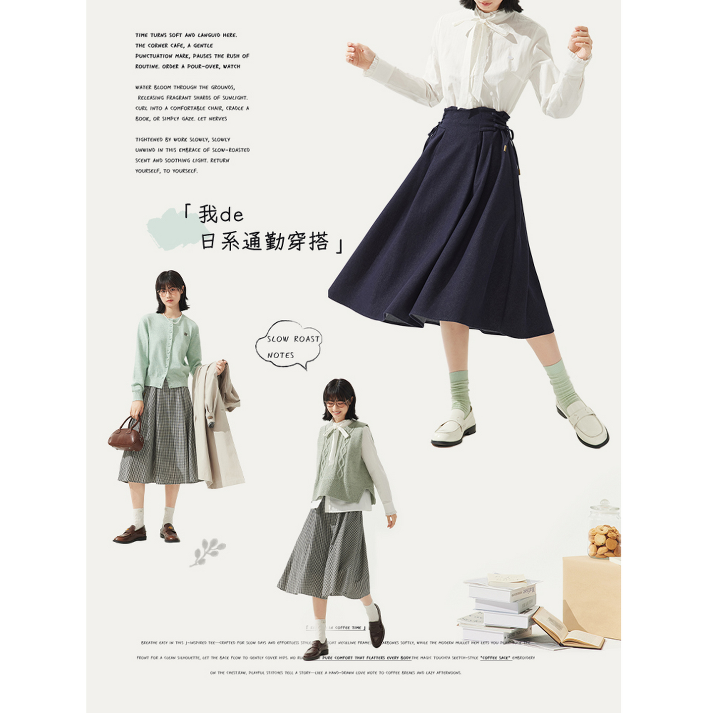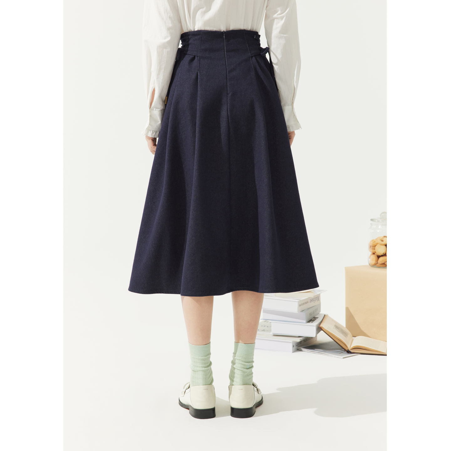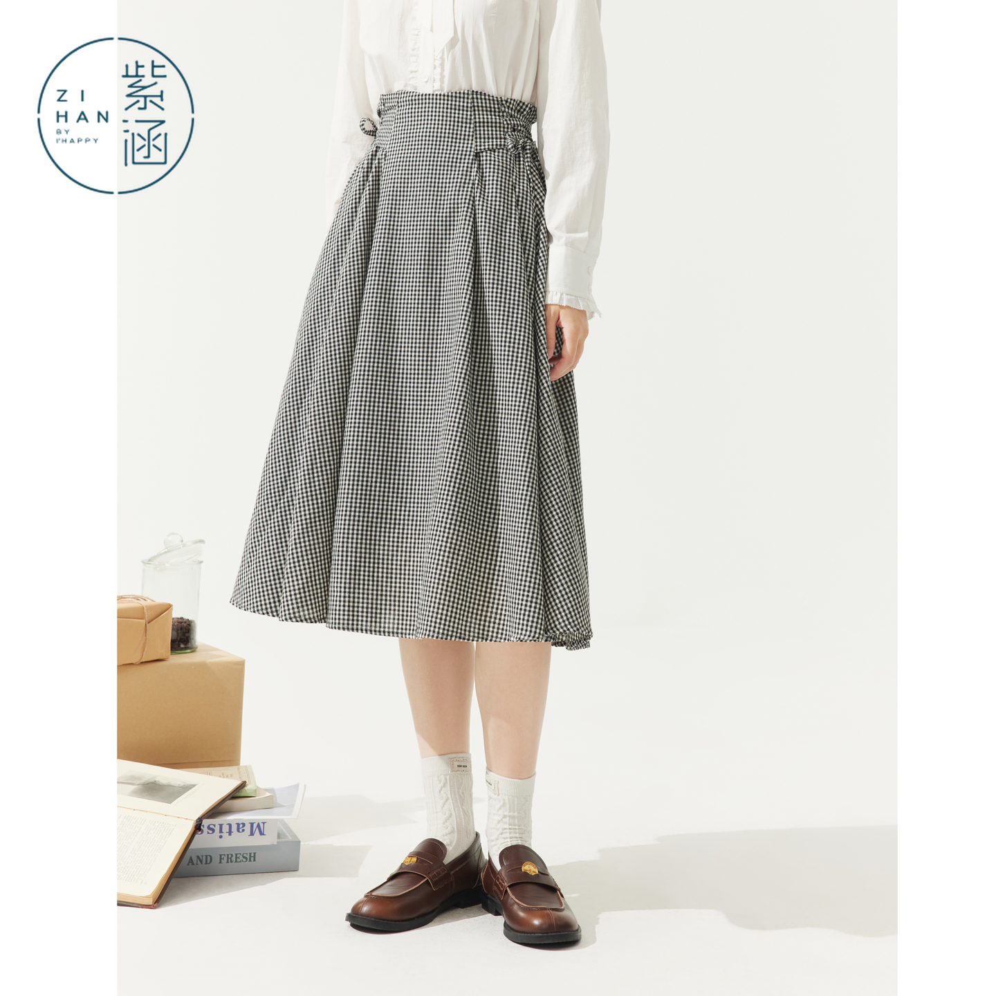 紫涵中长款高腰半身裙女2025年秋季新款日系两侧绑带收腰a字伞裙