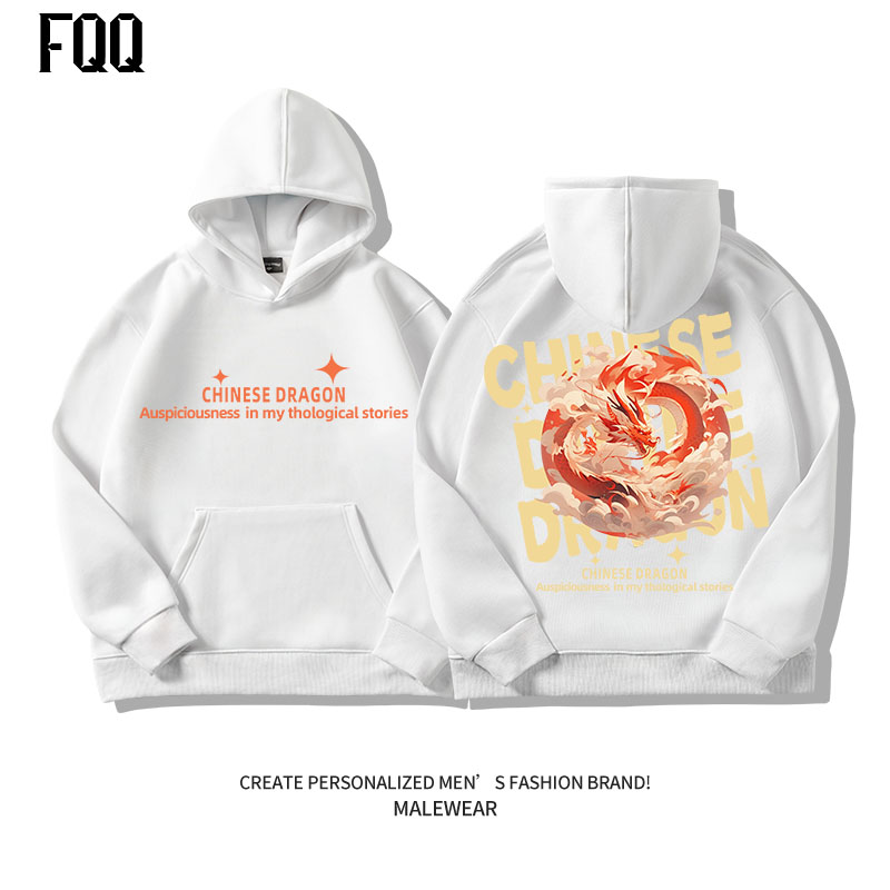 龙年本命年衣服男装卫衣秋冬季加绒酒红色2024年加厚男款新年帽衫
