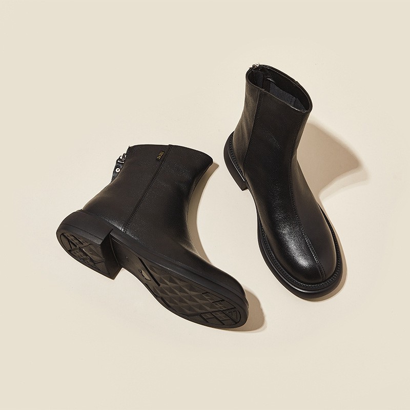 马丁靴女真皮2025年秋冬新款英伦风平底复古软皮后拉链切尔西短靴