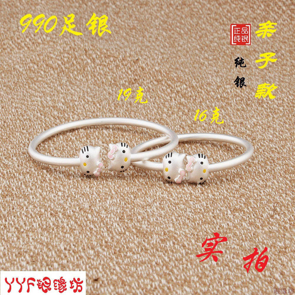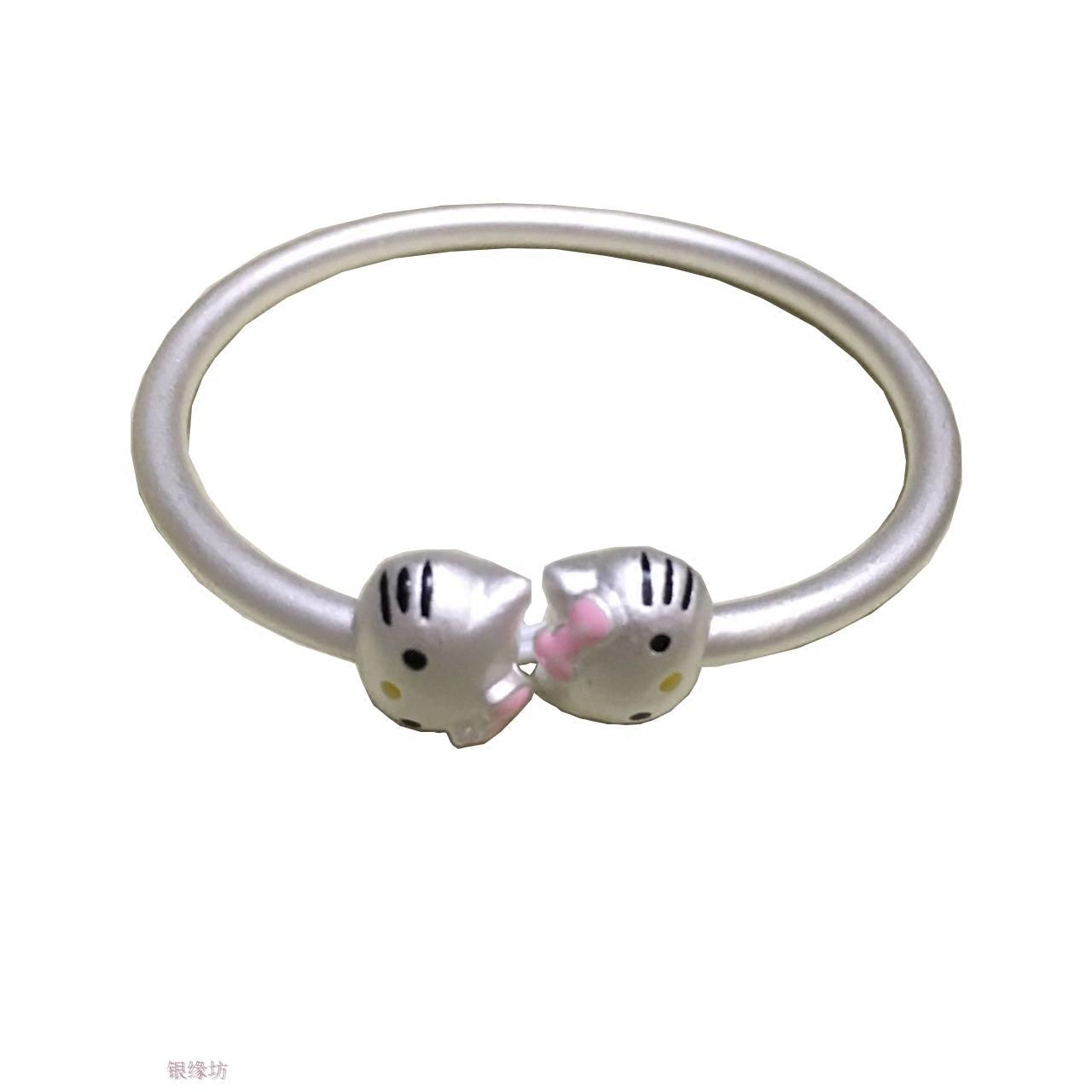 纯银凯蒂猫手镯亲子手链女婴儿童宝宝小孩卡通猫生日节日礼物手环