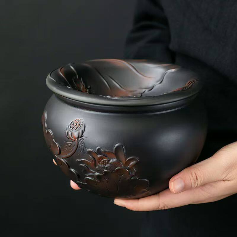 建水紫陶茶渣缸水盂茶洗茶渣分离废水缸茶桌家用大号水缸茶渣过滤