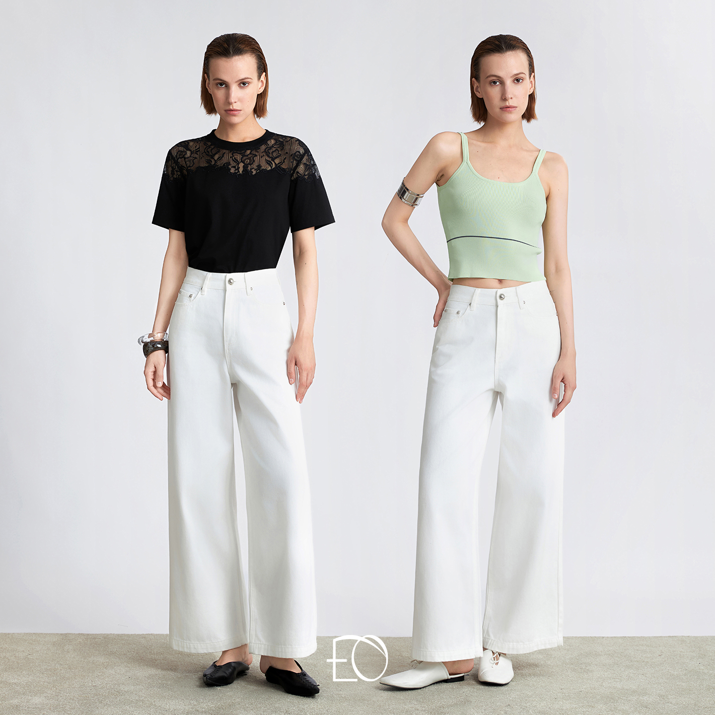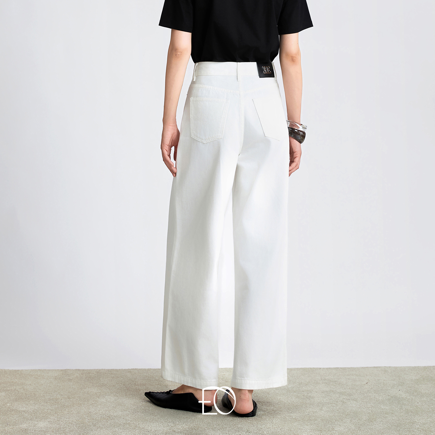 EVAOUXIU商场同款春款宽松高腰白色牛仔裤棉垂感休闲阔腿长裤子