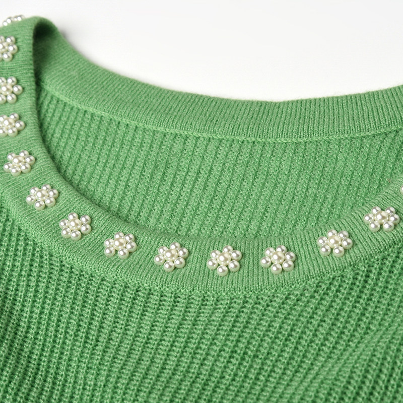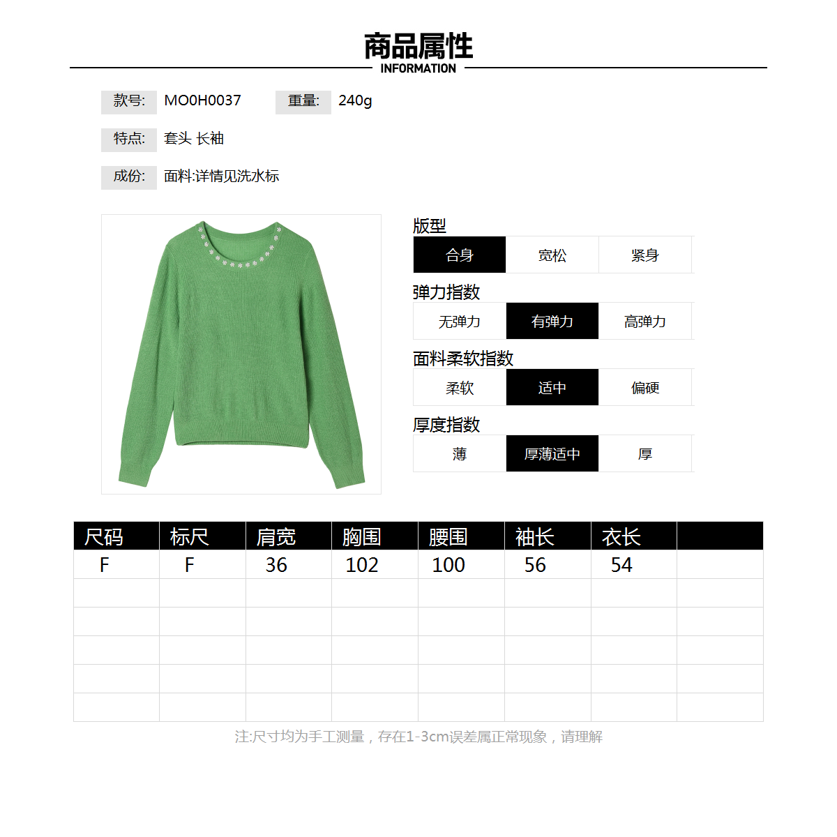 2025年冬Outlets正品 高端MO系列珍珠点缀花朵上衣软糯舒适毛衣女