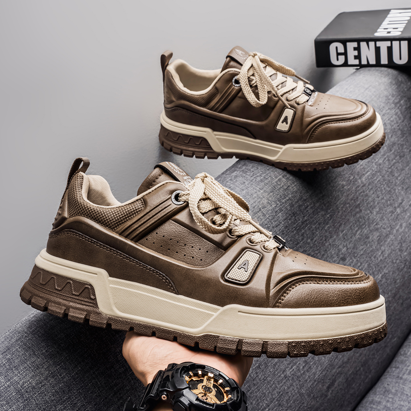 高级感男鞋秋冬季休闲复古工装潮鞋男士2025新款运动厚底百搭板鞋