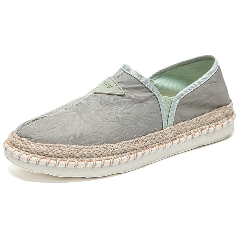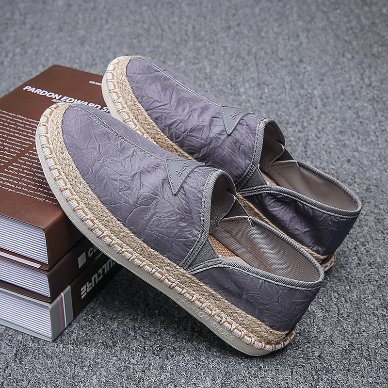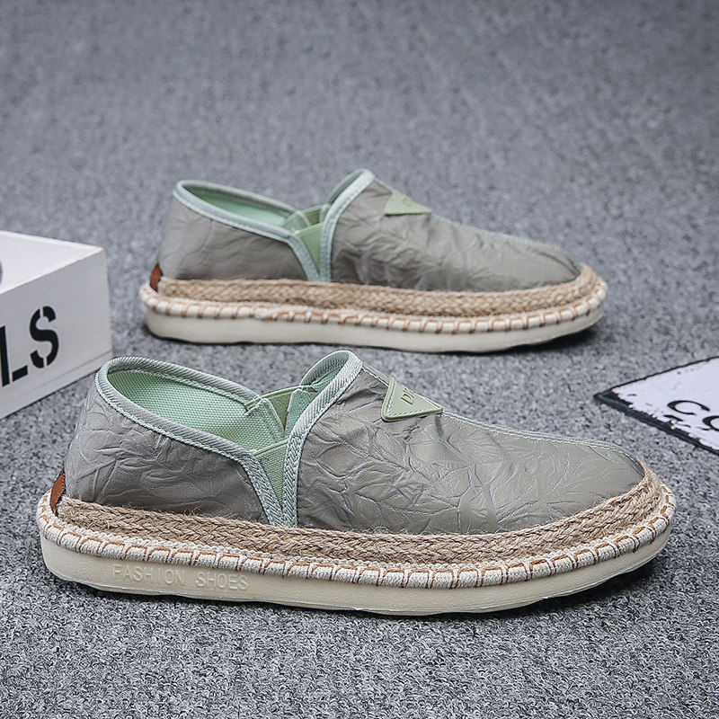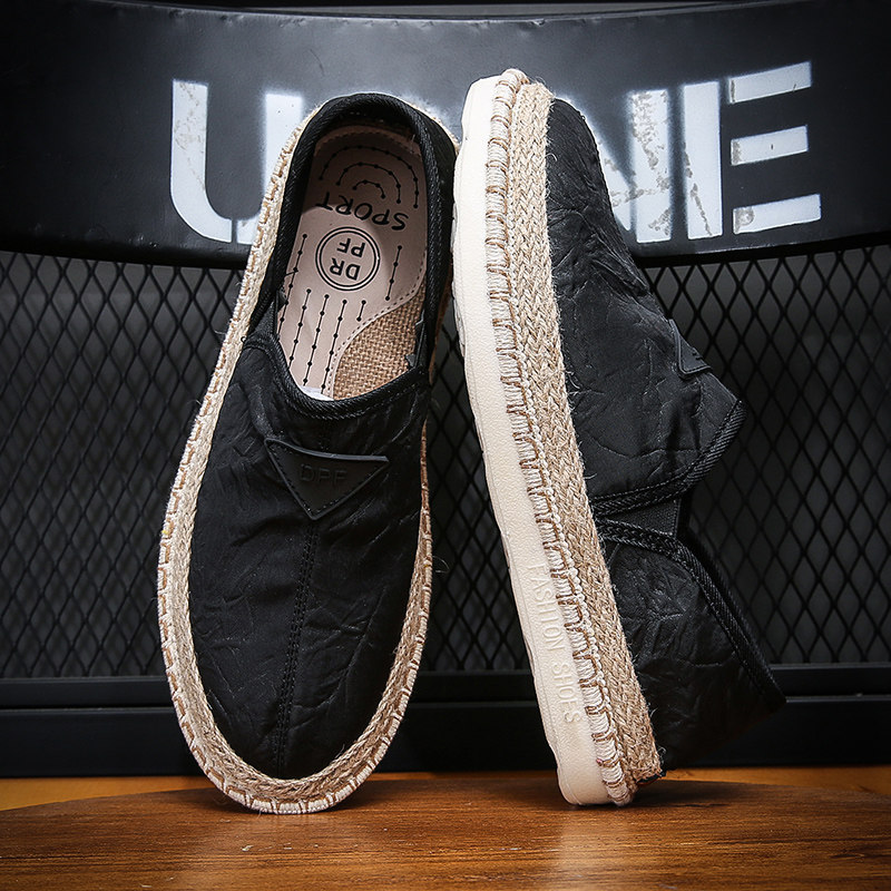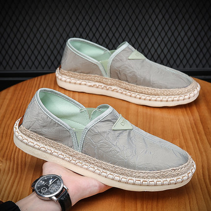 2025新款男士一脚蹬驾车懒人渔夫鞋手工编织大码春夏透气帆布鞋男
