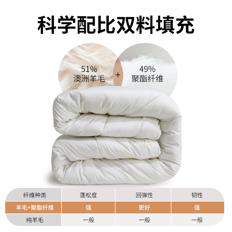 黛富妮澳洲进口羊毛被子冬季加厚保暖单双人棉被褥被芯1.5/1.8米