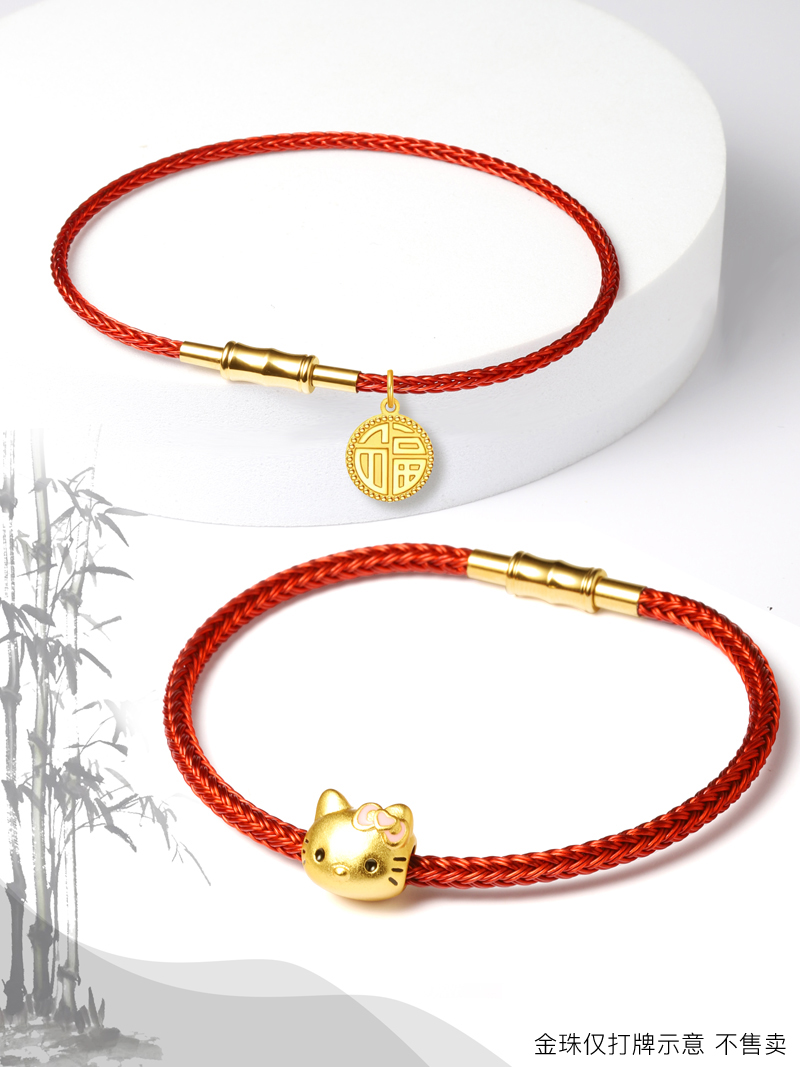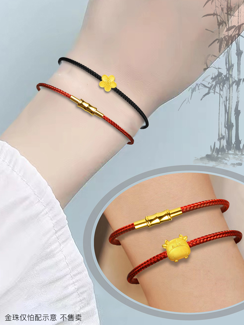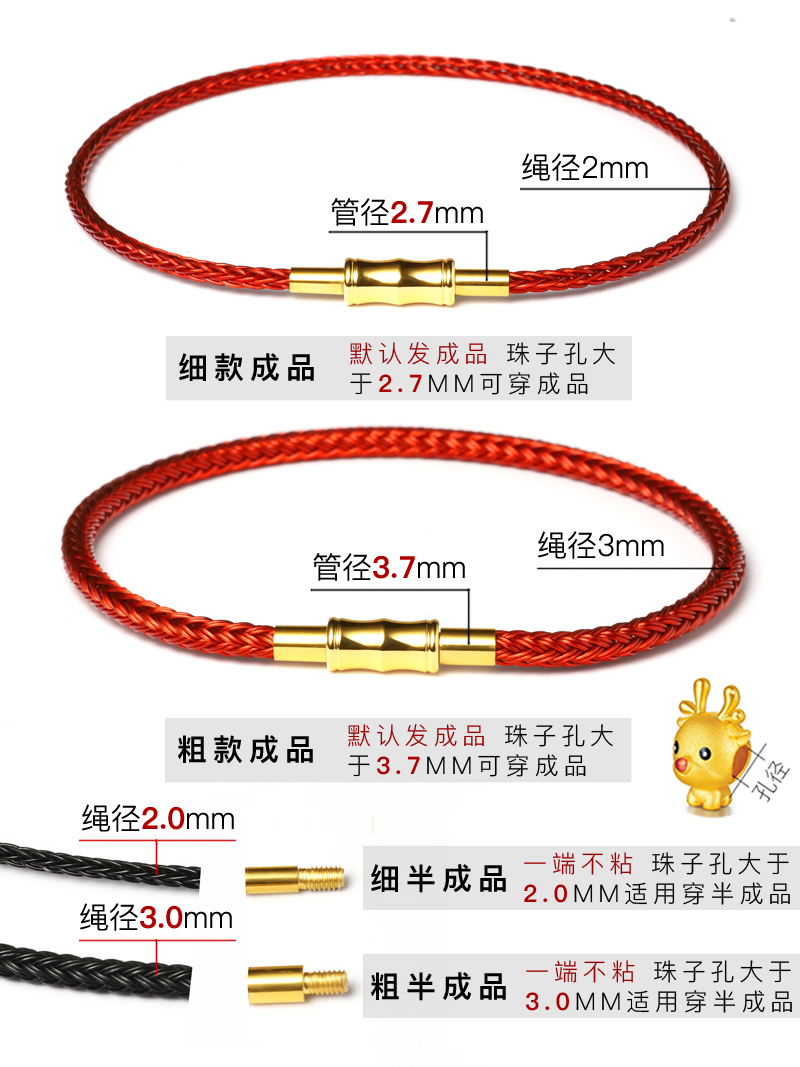 喜竹转运珠钢丝手绳女2毫米可穿珠黄金本命年红绳皮绳手链半成品