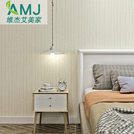 现代简约素色加厚无纺布壁纸客厅竖条纹浅茶色卧室纯色墙纸背景墙