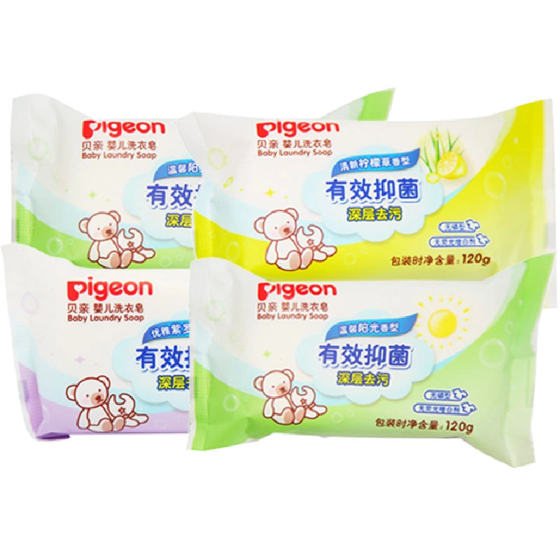 Pigeon贝亲婴儿肥皂宝宝婴幼儿无磷型抑菌洗衣皂120g*4块儿童新生