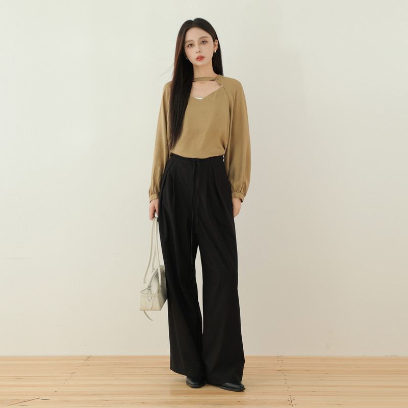 AIRIQI奥莱女装高腰休闲裤都市通勤极简高级感抽绳长裤AF41CK175