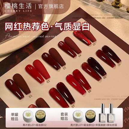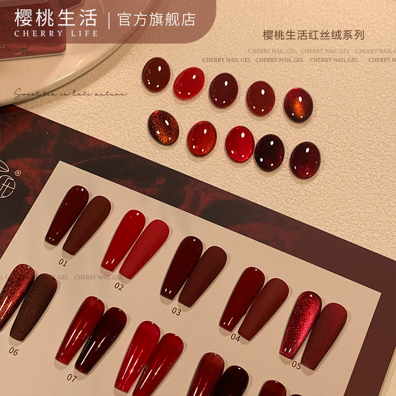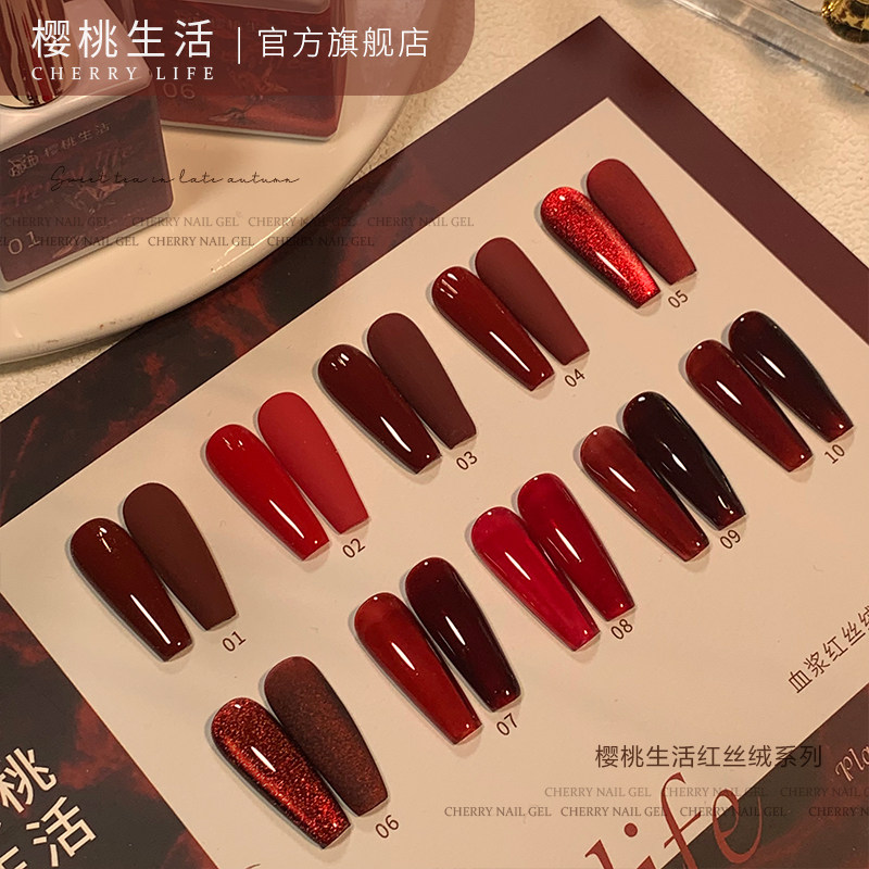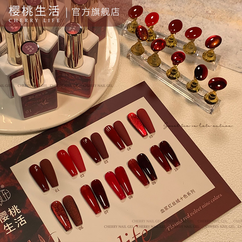 樱桃生活美甲胶显白血浆红丝绒玫瑰酒红新年红色车厘子红色甲油胶