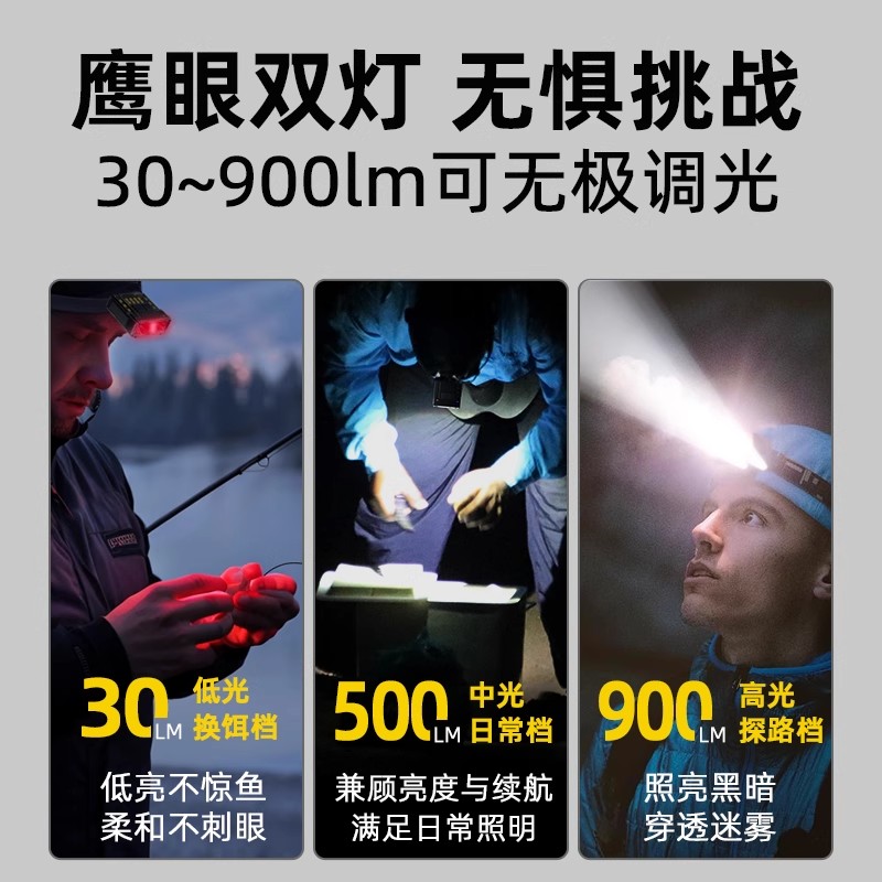 沃尔森强光感应头灯G7帽夹灯超亮充电超长续航夜钓钓鱼专用头戴式