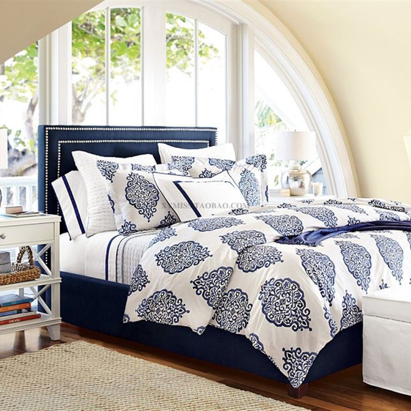 欧式布艺床软包床 美式双人床时尚简约现代小户型铆钉时尚欧式床